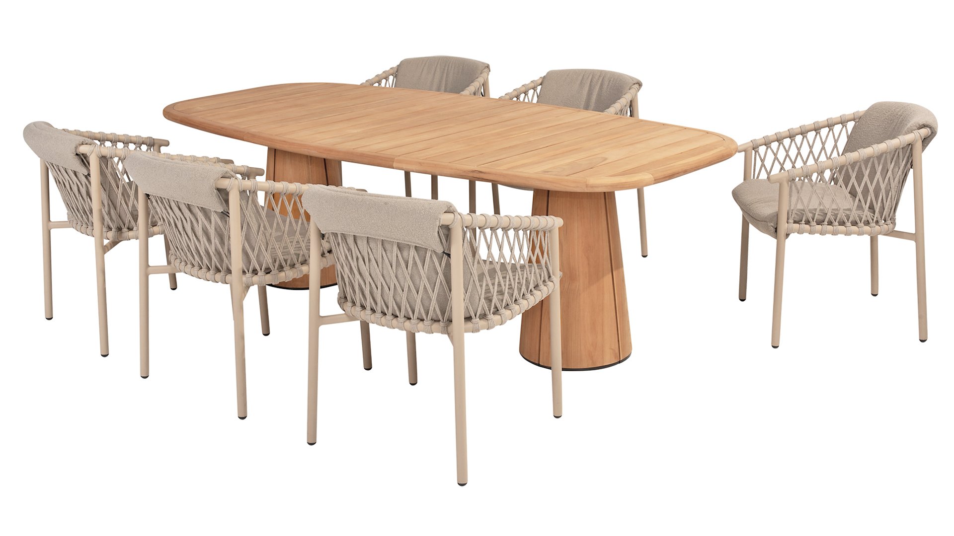 Gartenmöbel aus Teakholz bieten einen atemberaubenden Blick.Teakholz eignet sich besonders gut für den Einsatz im Außenbereich. Es ist resistent gegen Schädlinge und Pilze und widerstandsfähig gegen Sonne, Regen und Schnee. Mit der Zeit entwickelt das Teakholz eine silbergraue Patina. Gartenmöbel aus Teakholz bieten einen atemberaubenden Blick. Darüber hinaus ist es starkes Material und erfordert nur wenig Wartung. Wer die ursprüngliche Farbe des Teakholzes bevorzugt, kann durch regelmäßiges benutzen unser Pflegemittel ganz einfach das Vergrauen des Holzes verhindern.Darüber hinaus können Sie Teak mit grüner Seife reinigen. Durch Temperaturunterschiede und durch den Wechsel von Feuchtigkeit und Trockenheit können kleine Haarrisse entstehen. Es ist üblich, dass Man in dies Unvollkommenheiten findet, diese Unregelmäßigkeiten sind kennzeichnend für dieses Produkt. Diese Unregelmäßigkeiten können nie einen Anlass zu Reklamation, Garantie oder Claim formen. Es betrifft eine Unterschrift von Originalität! Wir gewähren Garantie auf alle Produktions- und Konstruktionsfehler. Die Wirkung von Teakholz ist nicht enthalten. Wenn Sie sich für Teakholz entscheiden, erwarten wir, dass Sie diese Eigenschaften zu schätzen wissen. Eventuell auftretende Haarrisse, Äste im Teakholz und raue Oberflächen im Laufe der Zeit fallen nicht unter unsere Garantie. Diese Eigenschaften verleihen dem Teakholz seinen eigenen Charakter und sind Teil der Optik. Seien Sie vorsichtig mit einem Blumentopf oder einer Vase auf Ihrem Gartentisch aus Teakholz, da dies zu hartnäckigen Kreisen oder Farbunterschieden führen kann.