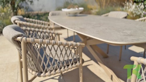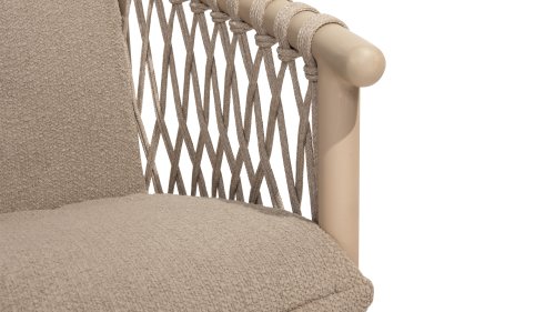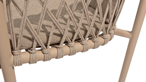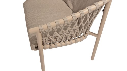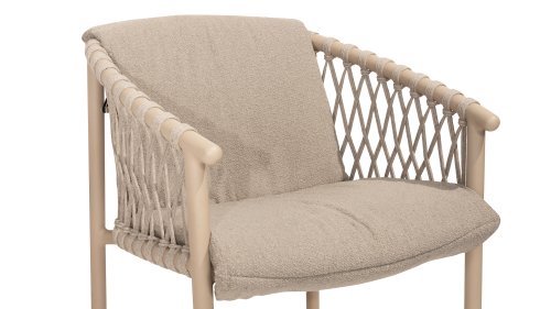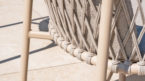 Der 4SO Allora-Stuhl ist eine stilvolle und komfortable Wahl für den Innen- und Außenbereich mit einem modernen Look, der zu verschiedenen Garteneinstellungen passt. Der Stuhl ist in zwei Varianten erhältlich: Latte und Terre. Der Allora-Stuhl ist aus Rope-Geflecht und pulverbeschichtetem Aluminium gefertigt, was sowohl für Langlebigkeit als auch für ein leichtes, modernes Aussehen sorgt. Die Verwendung von Rope-Geflecht macht den Stuhl verspielt und atmungsaktiv. Der pulverbeschichtete Aluminiumrahmen bietet zusätzlichen Schutz vor Witterungseinflüssen und macht den Stuhl pflegeleicht und leichtgewichtig.