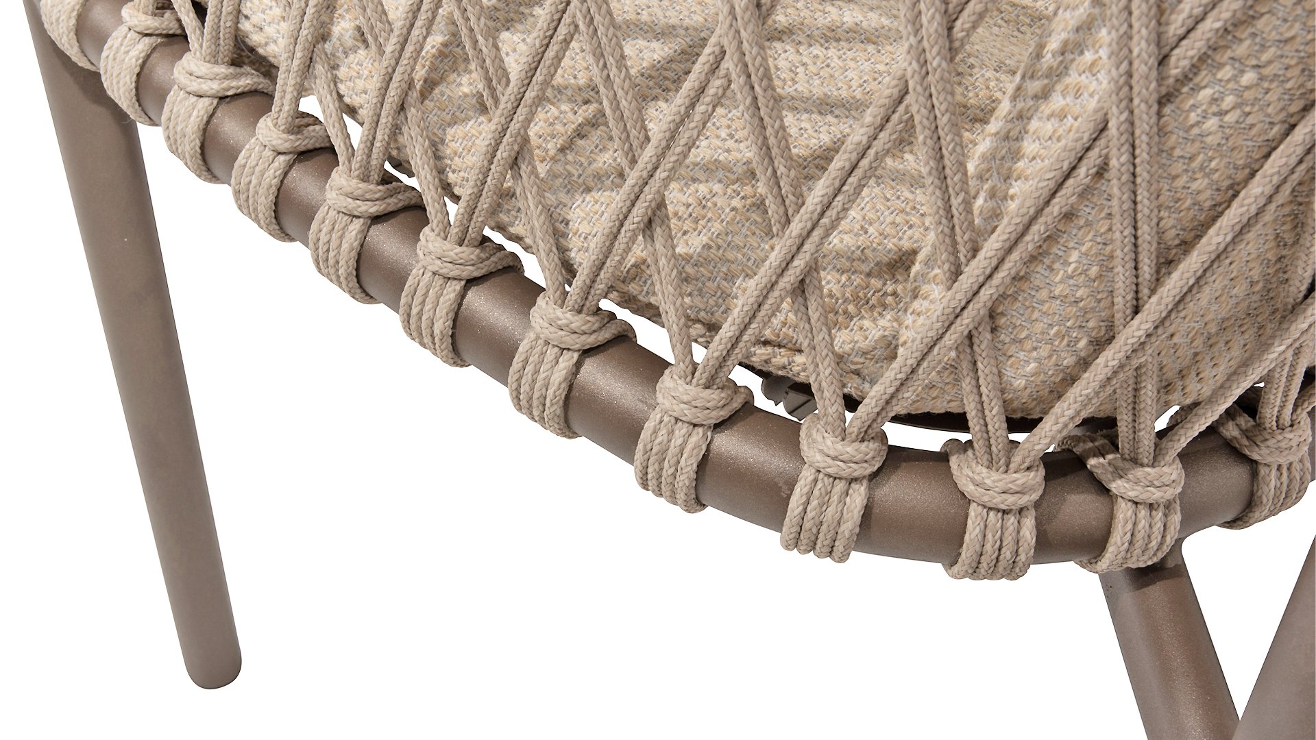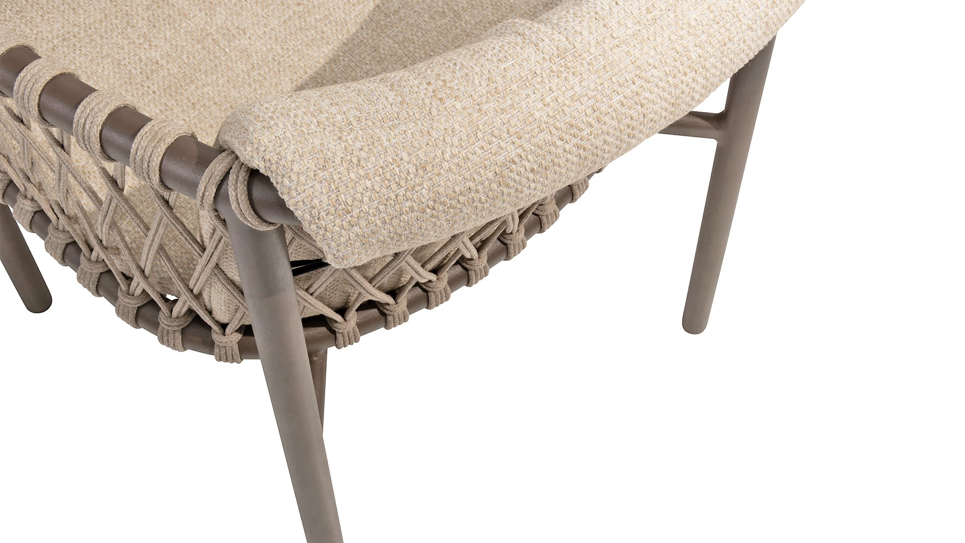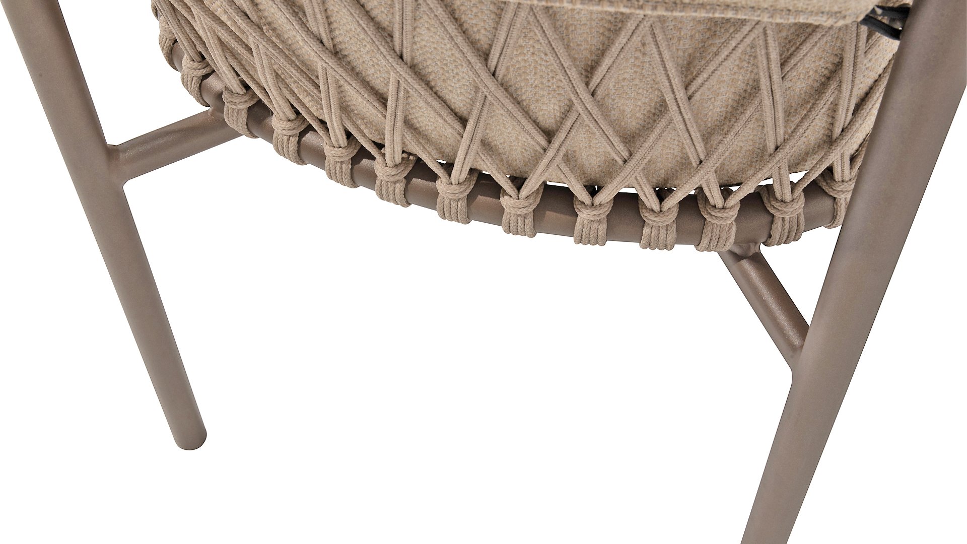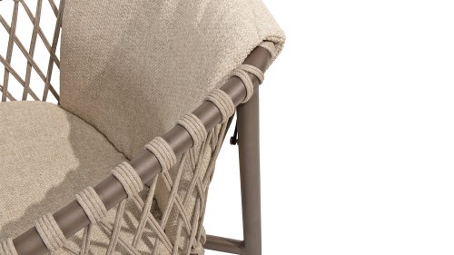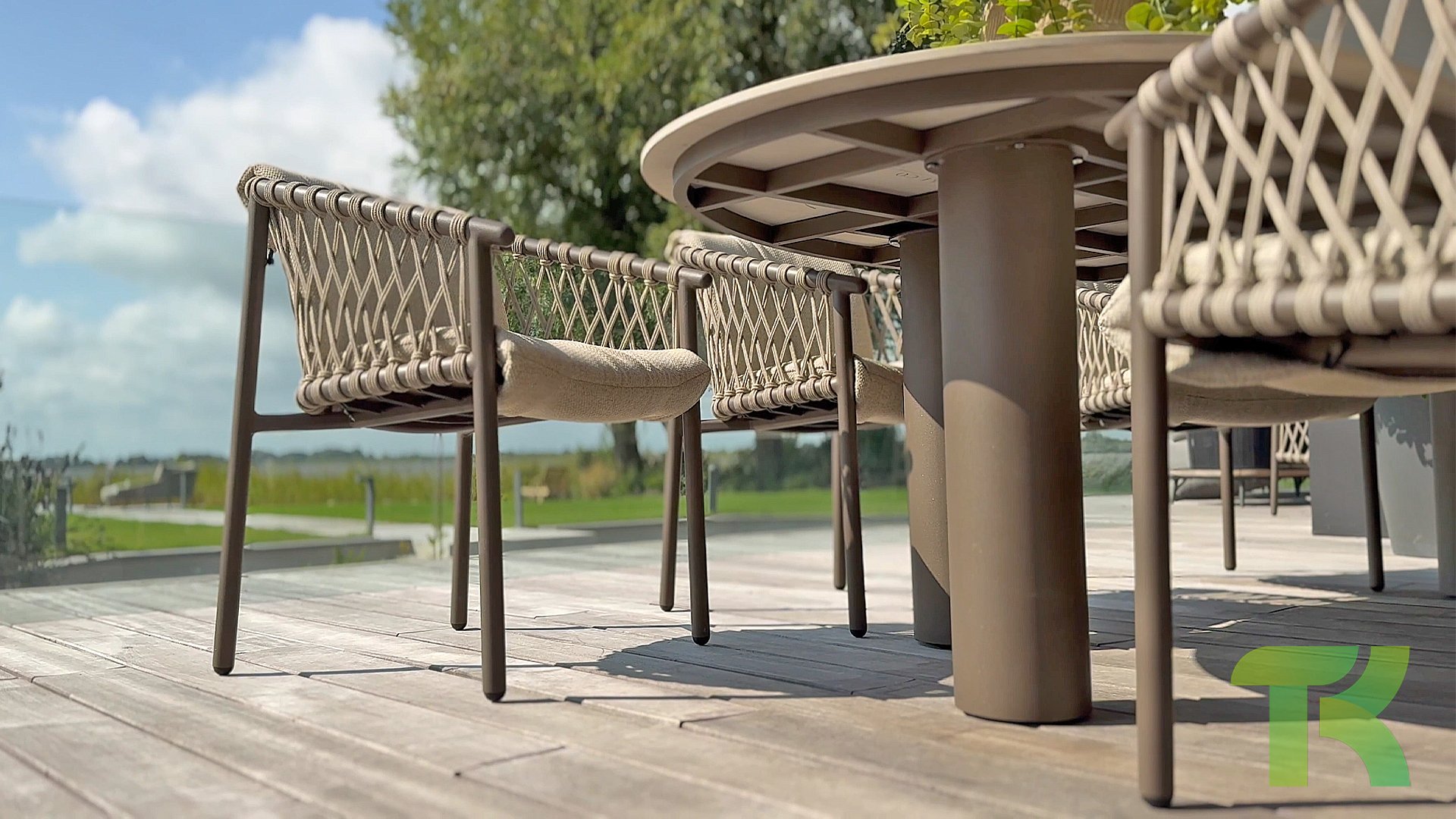 Der 4SO Allora-Stuhl ist eine stilvolle und komfortable Wahl für den Innen- und Außenbereich mit einem modernen Look, der zu verschiedenen Garteneinstellungen passt. Der Stuhl ist in zwei Varianten erhältlich: Latte und Terre. Der Allora-Stuhl ist aus Rope-Geflecht und pulverbeschichtetem Aluminium gefertigt, was sowohl für Langlebigkeit als auch für ein leichtes, modernes Aussehen sorgt. Die Verwendung von Rope-Geflecht macht den Stuhl verspielt und atmungsaktiv. Der pulverbeschichtete Aluminiumrahmen bietet zusätzlichen Schutz vor Witterungseinflüssen und macht den Stuhl pflegeleicht und leichtgewichtig.