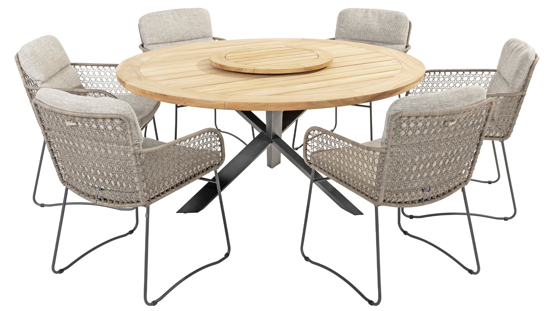 Gartenmöbel aus Teakholz bieten einen atemberaubenden Blick.Teakholz eignet sich besonders gut für den Einsatz im Außenbereich. Es ist resistent gegen Schädlinge und Pilze und widerstandsfähig gegen Sonne, Regen und Schnee. Mit der Zeit entwickelt das Teakholz eine silbergraue Patina. Gartenmöbel aus Teakholz bieten einen atemberaubenden Blick. Darüber hinaus ist es starkes Material und erfordert nur wenig Wartung. Wer die ursprüngliche Farbe des Teakholzes bevorzugt, kann durch regelmäßiges benutzen unser Pflegemittel ganz einfach das Vergrauen des Holzes verhindern.Darüber hinaus können Sie Teak mit grüner Seife reinigen. Durch Temperaturunterschiede und durch den Wechsel von Feuchtigkeit und Trockenheit können kleine Haarrisse entstehen. Es ist üblich, dass Man in dies Unvollkommenheiten findet, diese Unregelmäßigkeiten sind kennzeichnend für dieses Produkt. Diese Unregelmäßigkeiten können nie einen Anlass zu Reklamation, Garantie oder Claim formen. Es betrifft eine Unterschrift von Originalität! Wir gewähren Garantie auf alle Produktions- und Konstruktionsfehler. Die Wirkung von Teakholz ist nicht enthalten. Wenn Sie sich für Teakholz entscheiden, erwarten wir, dass Sie diese Eigenschaften zu schätzen wissen. Eventuell auftretende Haarrisse, Äste im Teakholz und raue Oberflächen im Laufe der Zeit fallen nicht unter unsere Garantie. Diese Eigenschaften verleihen dem Teakholz seinen eigenen Charakter und sind Teil der Optik. Seien Sie vorsichtig mit einem Blumentopf oder einer Vase auf Ihrem Gartentisch aus Teakholz, da dies zu hartnäckigen Kreisen oder Farbunterschieden führen kann.
