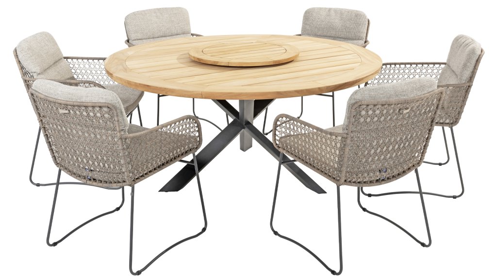 Diesen Tisch können Sie getrost als das Highlight der Kollektion bezeichnen. Das hochwertige Teakholz in Kombination mit dem schönen Kreuzbein machen diesen Taste by 4Seasons Prado 160cm Tisch zu einem Schmuckstück. Mit fast jedem Esszimmerstuhl aus unserer Kollektion ist für jeden etwas dabei.