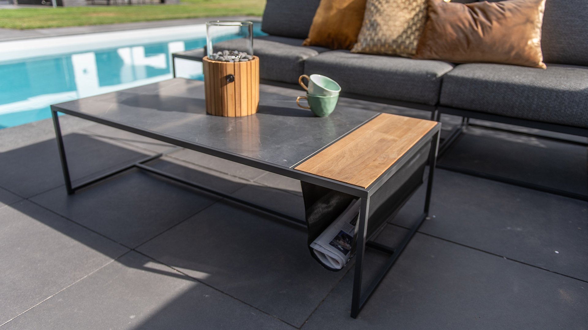 Die 4Seasons Atlas Lounge-Tische sind perfekt für alle, die minimalistisches Design lieben. Dünne Rahmen aus Edelstahl und schöne keramische Tischplatten bilden eine zeitlose Kombination. Ist dir schon das Magazinhalter-Gimmick aufgefallen? Ziemlich cool, oder?