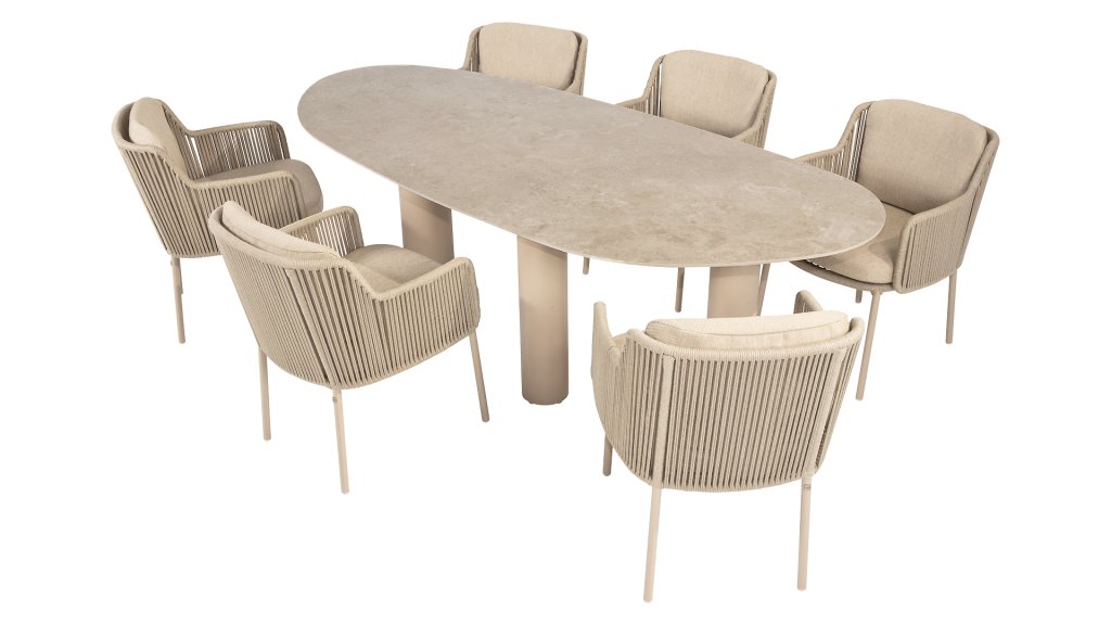 1 x Taste Estate Tisch Mango Form Keramic/Alu Latte 240x105cm