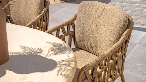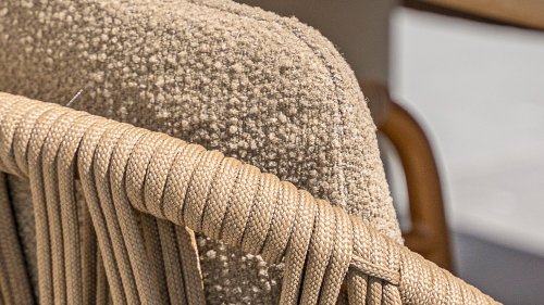 Die bequeme Kissen aus weichem Bouclé-Stoff sorgen für unvergleichlichen Sitzkomfort, sodass Sie stundenlang die Sonne genießen oder gemütliche Abende im Freien verbringen können. Der Bouclé-Stoff fügt nicht nur eine luxuriöse Note hinzu, sondern auch eine angenehme Textur, die zum Entspannen einlädt. Diese Lounge-Modelle sind für maximalen Komfort entworfen, egal ob Sie mit Freunden plaudern oder in aller Ruhe ein Buch lesen.