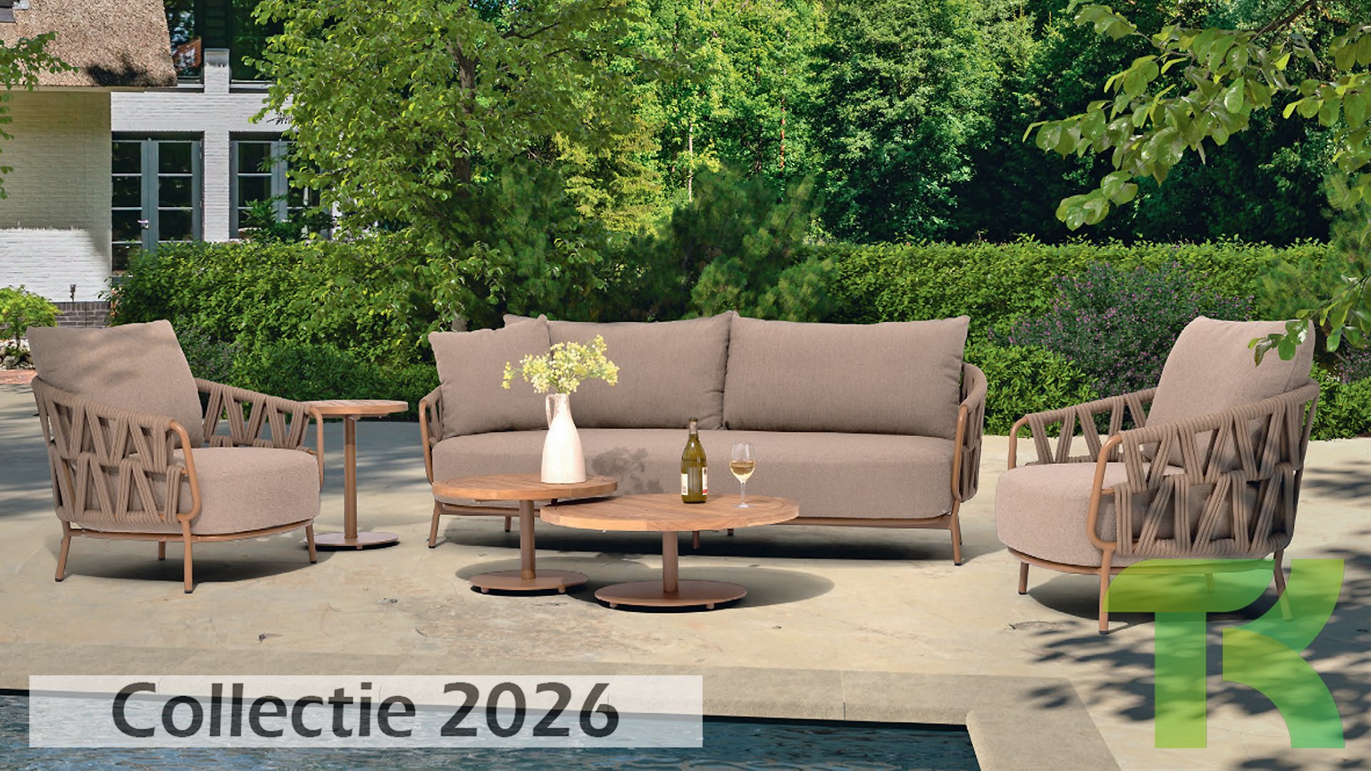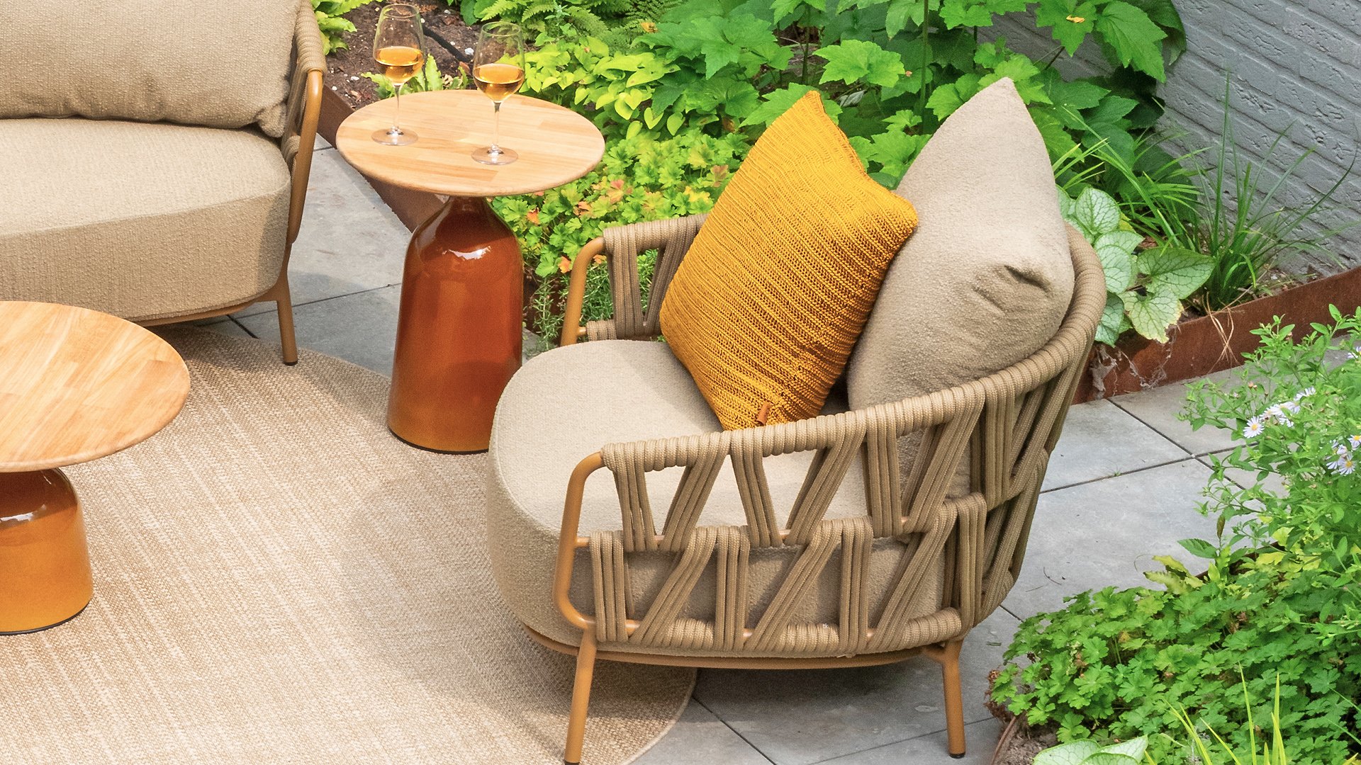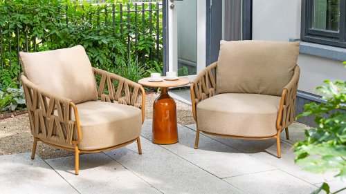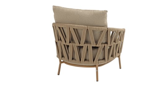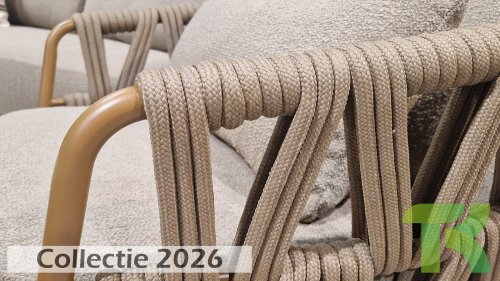 Der robuste Rahmen besteht aus pulverbeschichtetem Aluminium in einem warmen Erdton, kombiniert mit einem auffallend dicken Seilgeflecht. Diese handwerkliche Verarbeitung verleiht der Biarritz -Serie ein robustes und zugleich edles Aussehen. Die geräumigen Sitzflächen, die prallen Kissen und die weichen Texturen machen diese Lounge zu einem luxuriösen Ort für lange Sommertage.