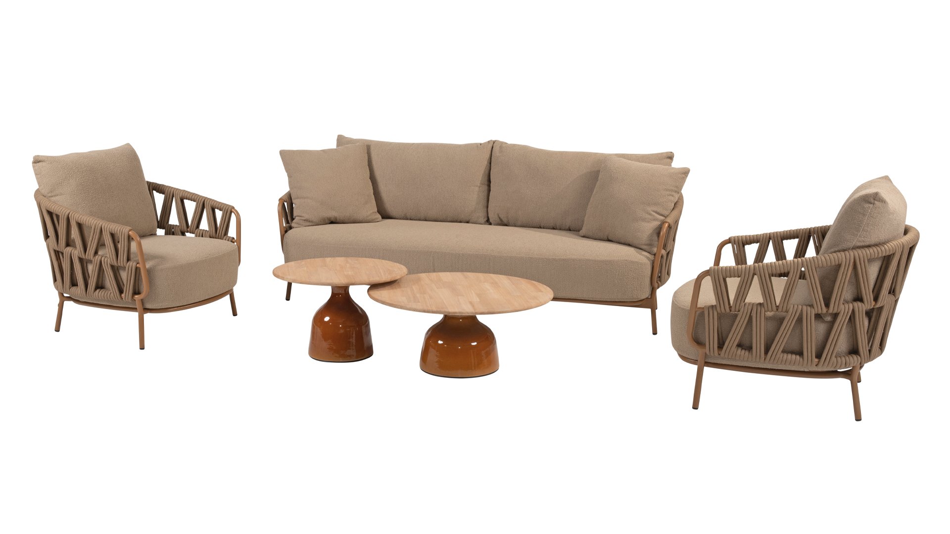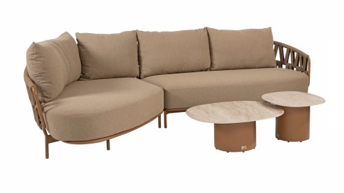 Der Name Biarritz erinnert an das glamouröse französische Badeort, berühmt für seine elegante Atmosphäre und seine feine Kultur. Diese Möbel sind ebenso stilvoll und zeitlos wie das ikonische Resort an der Atlantikküste. Das warme, bernsteinfarbene Gestell erinnert an die Sonnenuntergänge über dem Ozean, während die luxuriösen Kissen den Komfort bieten, den man nach einem Tag am Strand oder in der Stadt verdient.