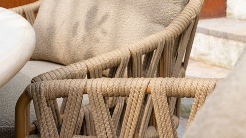 Holen Sie sich den Charme der französischen Küste in Ihren Garten mit der Biarritz-Serie von 4 Seasons Outdoor. Diese wunderschöne Kollektion bietet nicht nur ein elegantes Design, sondern auch außergewöhnlichen Komfort, der jeden Garten, jede Terrasse oder Veranda in ein luxuriöses Refugium verwandelt. Das bernsteinfarbene Gestell verleiht dem Möbelstück eine warme, einladende Ausstrahlung, die sowohl in modernen als auch in klassischen Gärten perfekt zur Geltung kommt. Die extra dicken Kissen aus weichem Bouclé-Stoff sorgen für unvergleichlichen Sitzkomfort, sodass Sie stundenlang die Sonne genießen oder gemütliche Abende im Freien verbringen können. Der Bouclé-Stoff fügt nicht nur eine luxuriöse Note hinzu, sondern auch eine angenehme Textur, die zum Entspannen einlädt. Diese Lounge-Modelle sind für maximalen Komfort entworfen, egal ob Sie mit Freunden plaudern oder in aller Ruhe ein Buch lesen.