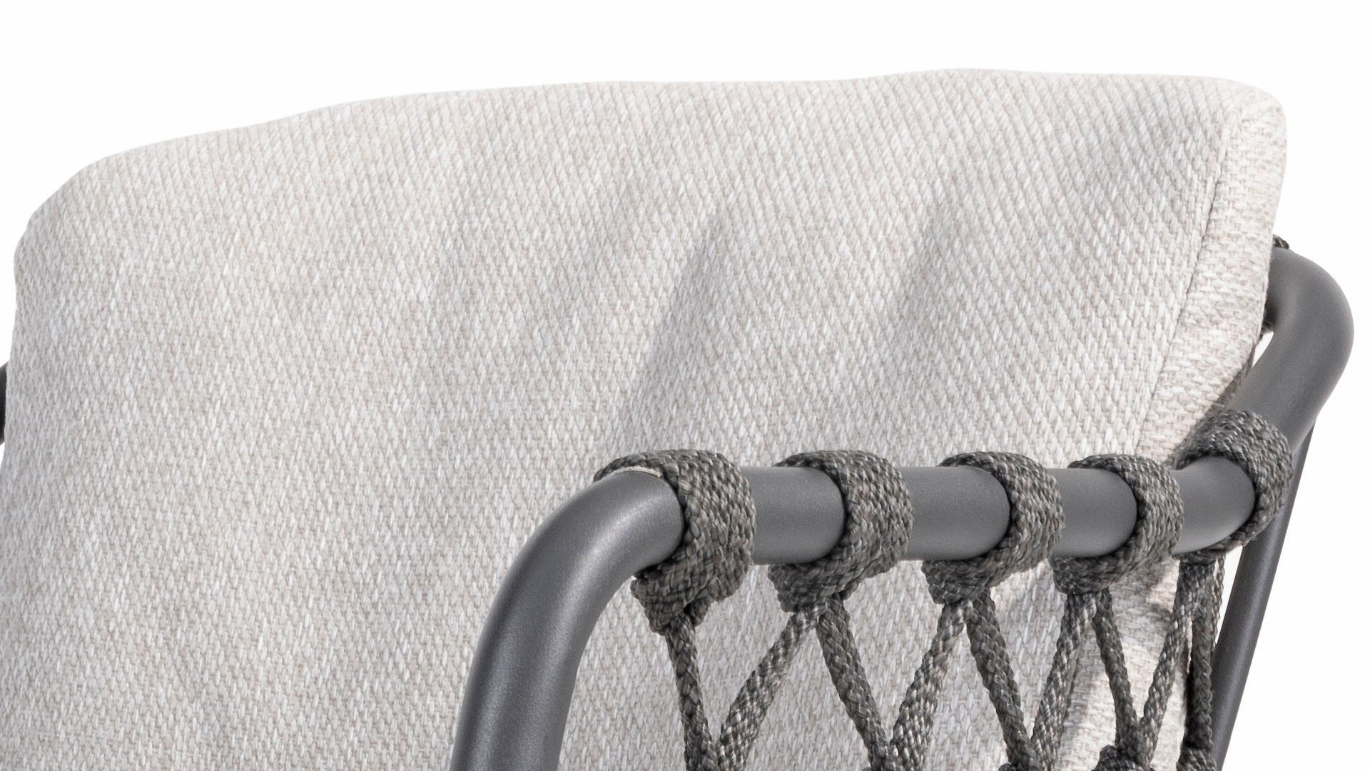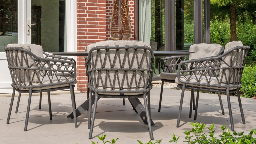 Die Calpi-Serie von 4 Seasons Outdoor hat ein zeitgemäßes Design und verleiht jeder Terrasse den hochwertigen Look, den Sie suchen. Die breiten Ropepartien sind auf originelle Weise gewebt und verleihen dem Calpi einen offenen Charakter. Der 4Seasons Calpi wird mit Kissen aus einem Allwetterstoff geliefert. Dieser Stoff wirkt wasser- und schmutzabweisend und ist somit widerstandsfähig gegen viele Witterungseinflüsse.