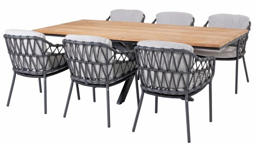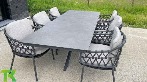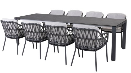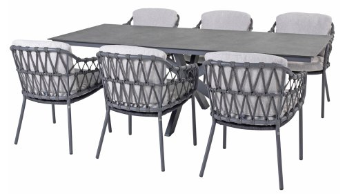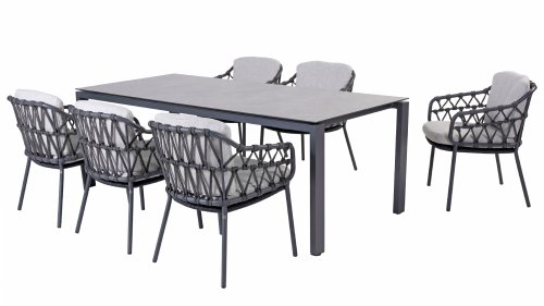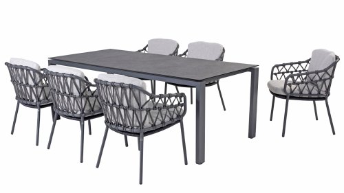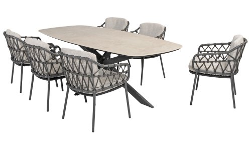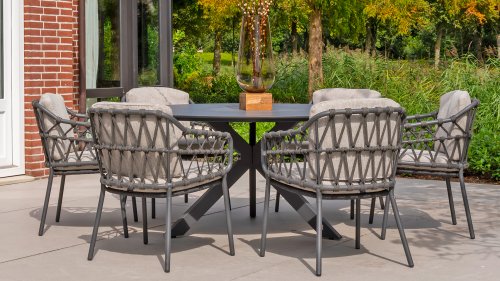 Das Calpi Set fällt sofort ins Auge, wenn es auf Ihrer Terrasse aufgestellt wird. Ein schönes langes Abendessen wird mit dem Calpi Dining noch attraktiver. Die Calpi-Serie ist eine komplette Familie innerhalb der wunderschönen Kollektion von 4 Seasons Outdoor. Auf diese Weise können Sie es mit einem Lounge-Set im gleichen Stil kombinieren.