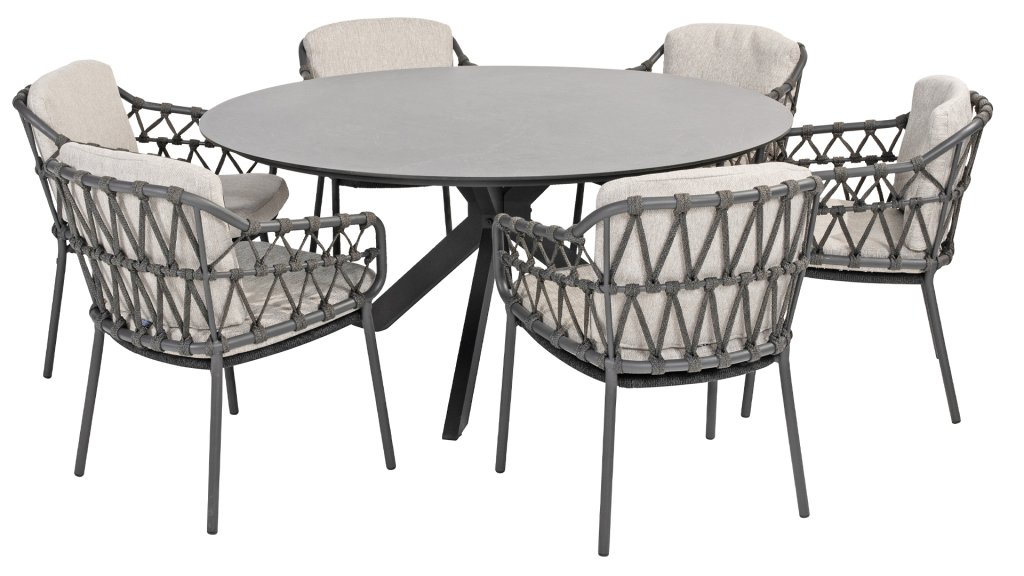 Das Calpi Dining von 4 Seasons Outdoor hat ein zeitgemäßes Design und verleiht jeder Terrasse den hochwertigen Look, den Sie suchen. Die breiten Seilpartien sind auf originelle Weise gewebt und verleihen dem Calpi einen offenen Charakter. Der Calpi wird mit einem Sitz- und Rückenkissen aus wetterfestem Stoff geliefert. Dieser Stoff wirkt wasser- und schmutzabweisend und ist somit widerstandsfähig gegen viele Witterungseinflüsse. Die Calpi-Serie ist eine komplette Familie innerhalb der wunderschönen Kollektion von 4 Seasons Outdoor. Auf diese Weise können Sie ein Loungegruppe und/oder ein Low dining Esstisch Set im gleichen Stil kombinieren.