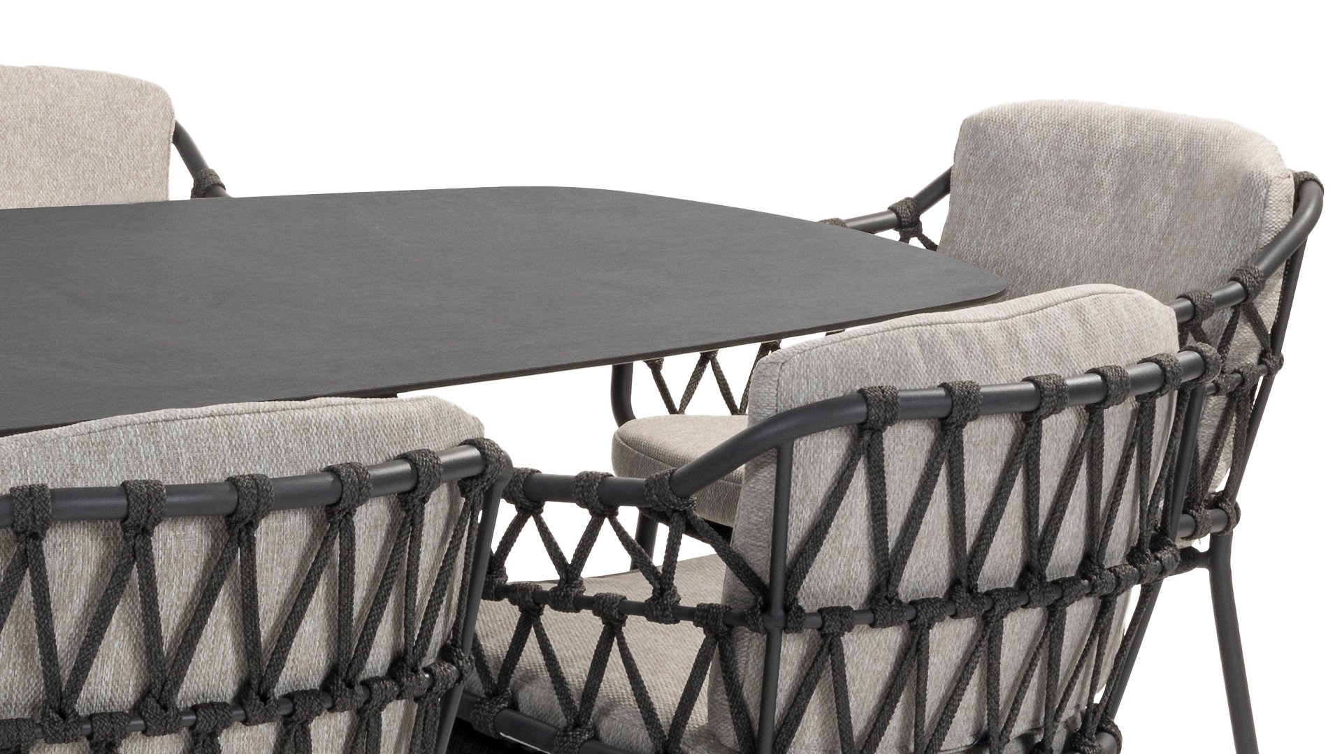 Das Calpi Dining von 4 Seasons Outdoor hat ein zeitgemäßes Design und verleiht jeder Terrasse den hochwertigen Look, den Sie suchen. Die breiten Seilpartien sind auf originelle Weise gewebt und verleihen dem Calpi einen offenen Charakter. Der Calpi wird mit einem Sitz- und Rückenkissen aus wetterfestem Stoff geliefert. Dieser Stoff wirkt wasser- und schmutzabweisend und ist somit widerstandsfähig gegen viele Witterungseinflüsse. Die Calpi-Serie ist eine komplette Familie innerhalb der wunderschönen Kollektion von 4 Seasons Outdoor. Auf diese Weise können Sie ein Loungegruppe und/oder ein Low dining Esstisch Set im gleichen Stil kombinieren.