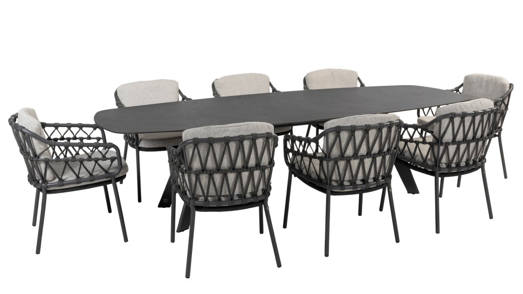 Der 4Seasons Outdoor Montana ist ein wunderschöner Tisch, der sofort ins Auge fällt. Es sieht nicht nur modern aus, sondern ist durch die Form der Tischplatte auch äußerst praktisch. Der Tisch zeichnet sich durch seine dänisch-ovale Tischplatte aus, die Form schafft ausreichend Platz auf allen Seiten des Tisches. Bei der Montana-Serie gibt es mehrere Optionen; Die 240 cm hohe Terrazzo-Keramikplatte kann mit einem Untergestell aus Edelstahl oder Teakholz kombiniert werden. Innerhalb der Montana-Serie gibt es auch einen 280 cm großen Tisch mit HPL-Platte.