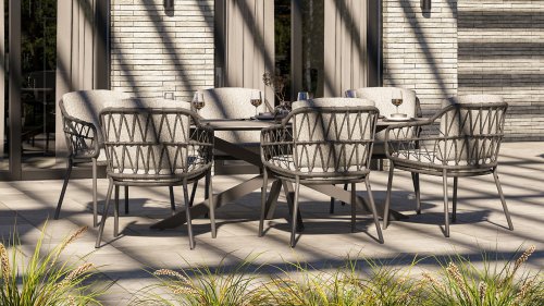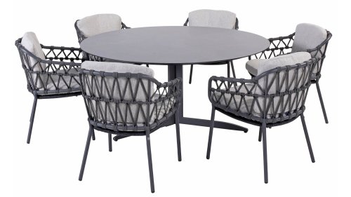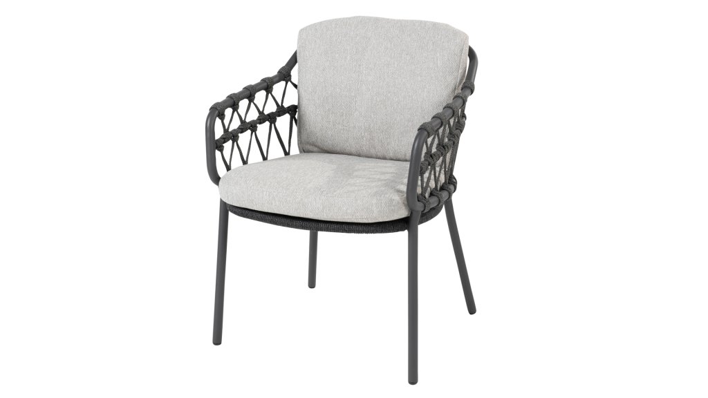 Die Calpi Dining von 4 Seasons Outdoor hat ein zeitgemäßes Design und verleiht jeder Terrasse das Premium-Aussehen, nach dem Sie suchen. Die breiten Rope-Elemente sind auf originelle Weise geflochten und verleihen dem Calpi einen offenen Charakter. Der Calpi wird mit einem Sitz- und Rückenkissen aus einem Allwetterstoff geliefert. Dieser Stoff ist wasser- und schmutzabweisend, was ihn widerstandsfähig gegen viele Witterungseinflüsse macht.