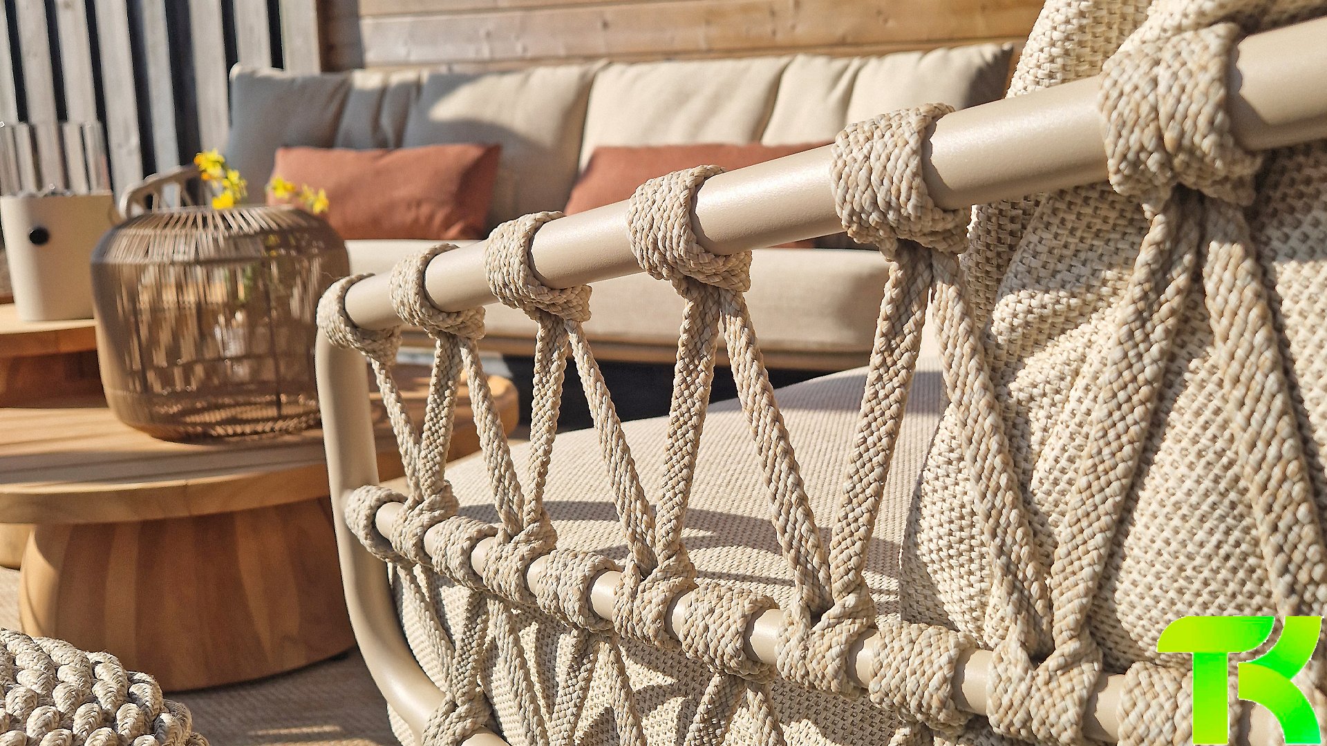 Dieses wunderschöne Material eignet sich perfekt für den Außenbereich, denn Rope ist nicht nur eine normale Spitze, an der Sie Ihre Schuhe binden können. Unsere runden Fäden sind mit einem Kunststoffkern versehen. Diese Basis aus Polypropylen sorgt dafür, dass sich das Rope minimal dehnt und sie nimmt außerdem keine Feuchtigkeit auf. Die Umhüllung besteht aus Acrylstoff, der mit dem wetterfesten Stoff unserer Gartenkissen vergleichbar ist. Diese Umhüllung fühlt sich weich an und ist sehr wasserabweisend, UV-beständig und farbecht. Die flachen Rope-Varianten besitzen den gleichen wetterfesten Materialmix, doch das Polypropylen-Material wurde hier mit dem Acryl-Stoff verwebt. Durch diese Technik besitzt das flache Rope die gleichen Eigenschaften, hat jedoch eine ganz andere Ausstrahlung.