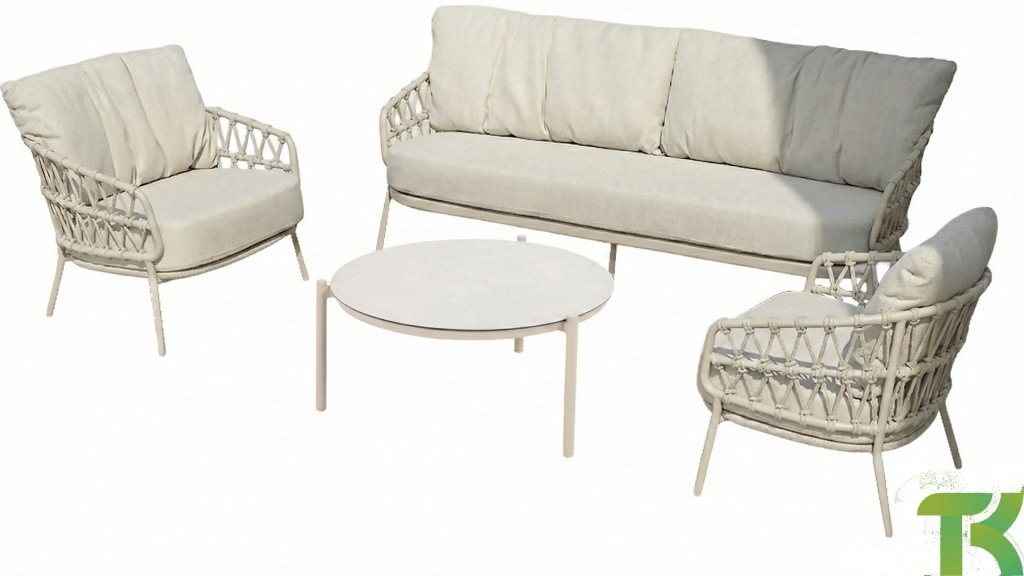 Die 4 Seasons Outdoor Calpi-Serie im neuen Gewand, Latte. Nur bei Gartenmöbel-Rabatt erhältlich! Es verfügt über ein modernes Design und verleiht jeder Terrasse das hochwertige und warme Aussehen, das Sie suchen. Die breiten Seilteile sind auf originelle Weise geflochten und verleihen dem Calpi einen offenen Charakter. Der 4Seasons Calpi wird mit Kissen aus Allwetterstoff geliefert. Dieser Stoff wirkt wasser- und schmutzabweisend und ist somit resistent gegen viele Witterungseinflüsse. Das Gestell besteht aus pulverbeschichtetem Edelstahl, wodurch sich das 4SO Calpi Loungegruppe sehr gut für den ganzjährigen Aufenthalt im Freien eignet.