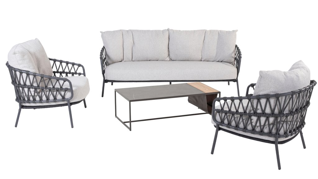 Die Calpi Lounge-Serie von 4 Seasons Outdoor, verfügbar im Anthrazit und Latte. Es hat ein zeitgemäßes Design und verleiht jeder Terrasse den Premium-Look, den Sie suchen. Die breiten Seilteile sind auf originelle Weise geflochten und verleihen dem Calpi einen offenen Charakter. Der 4Seasons Calpi wird mit Kissen aus Allwetterstoff geliefert. Dieser Stoff wirkt wasser- und schmutzabweisend und ist somit resistent gegen viele Witterungseinflüsse. Das Gestell besteht aus pulverbeschichtetem Edelstahl, wodurch sich das Calpi Lounge-Set sehr gut für die ganzjährige Verwendung im Freien eignet. Schauen Sie sich auch das 4SO Calpi Dining oder das 4SO Calpi Low Dining an!