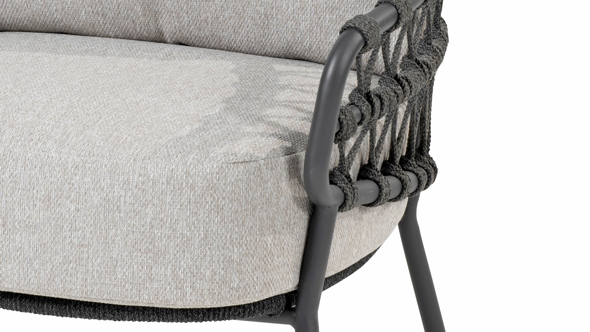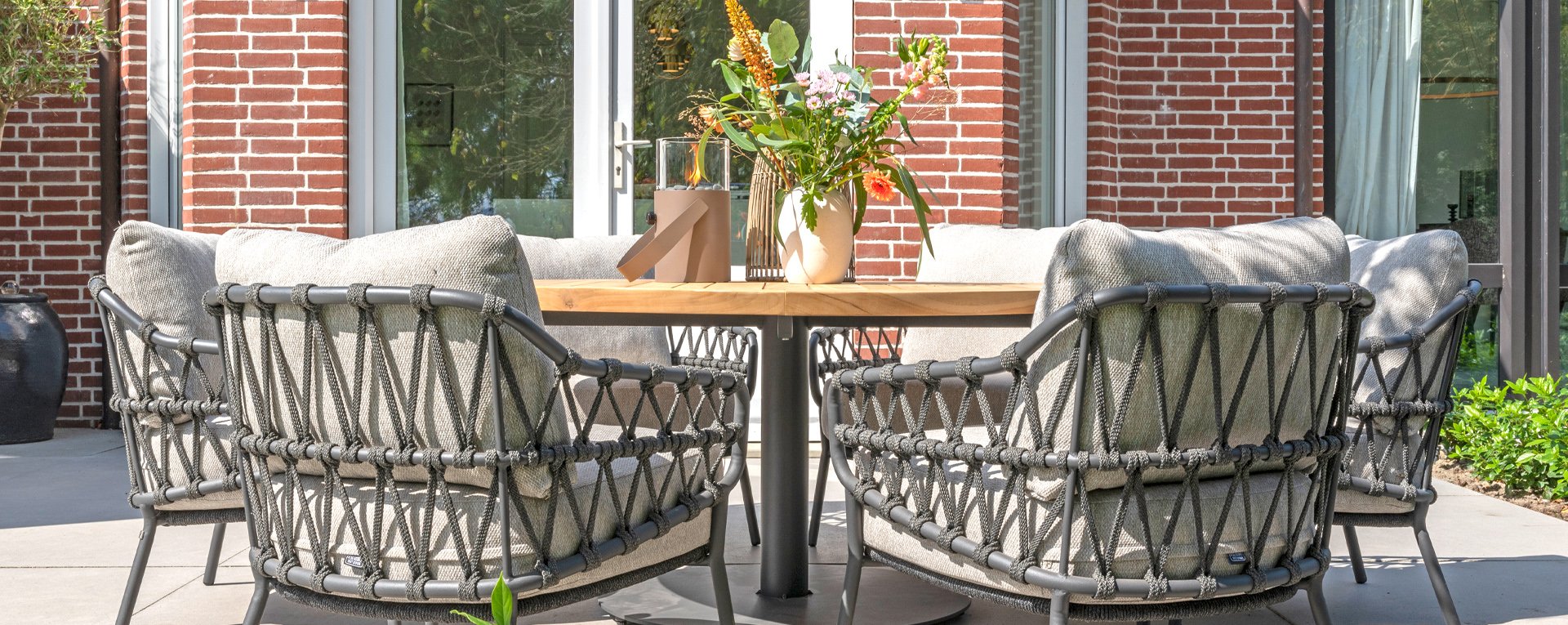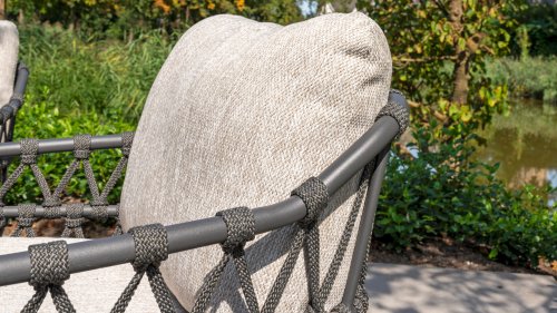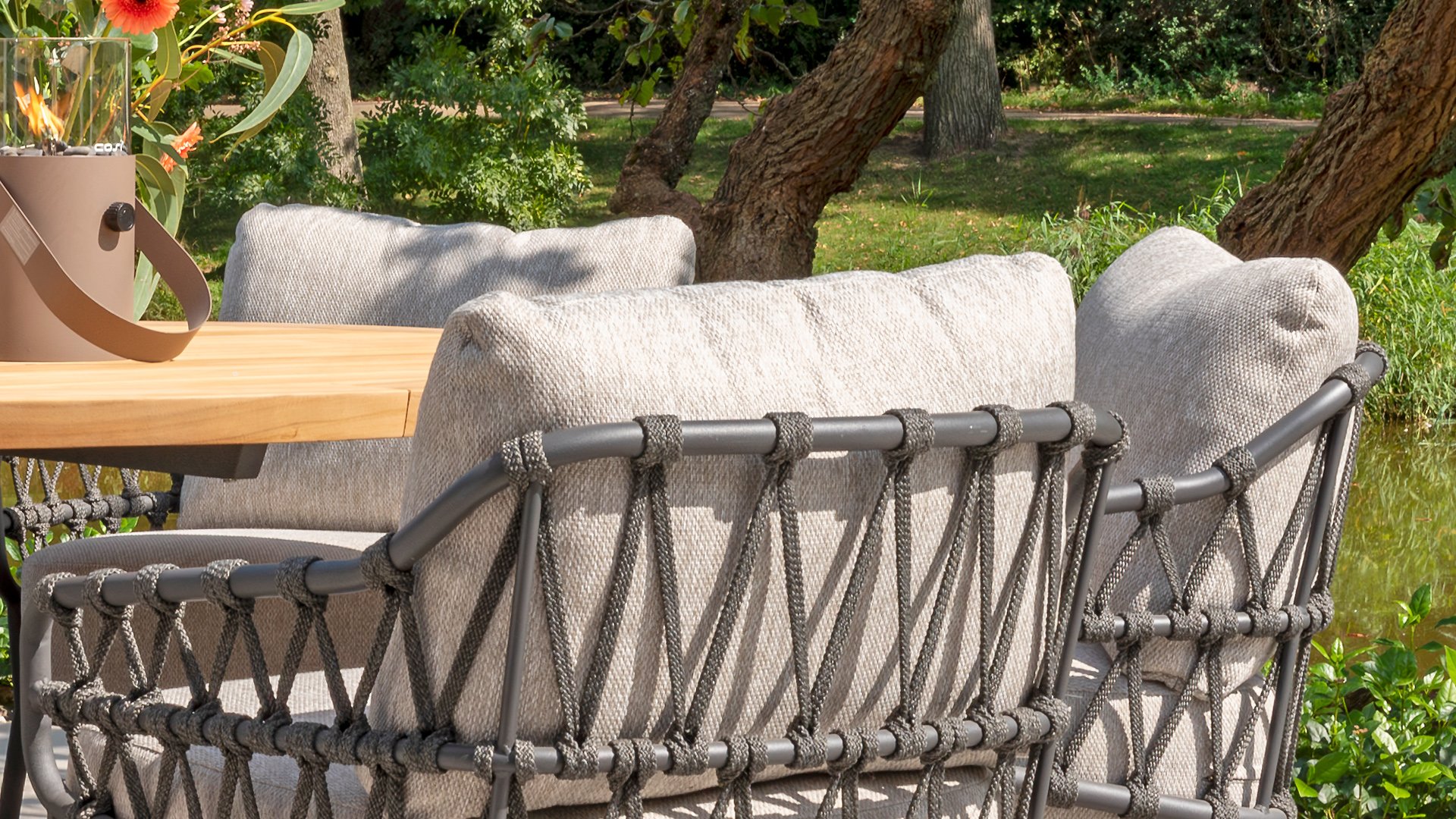 Die Calpi-Serie von 4 Seasons Outdoor hat ein zeitgemäßes Design und verleiht jeder Terrasse den hochwertigen Look, den Sie suchen. Die breiten Ropepartien sind auf originelle Weise gewebt und verleihen dem Calpi einen offenen Charakter. Der 4Seasons Calpi wird mit Kissen aus einem Allwetterstoff geliefert. Dieser Stoff wirkt wasser- und schmutzabweisend und ist somit widerstandsfähig gegen viele Witterungseinflüsse.