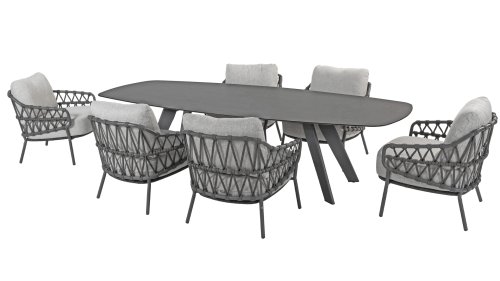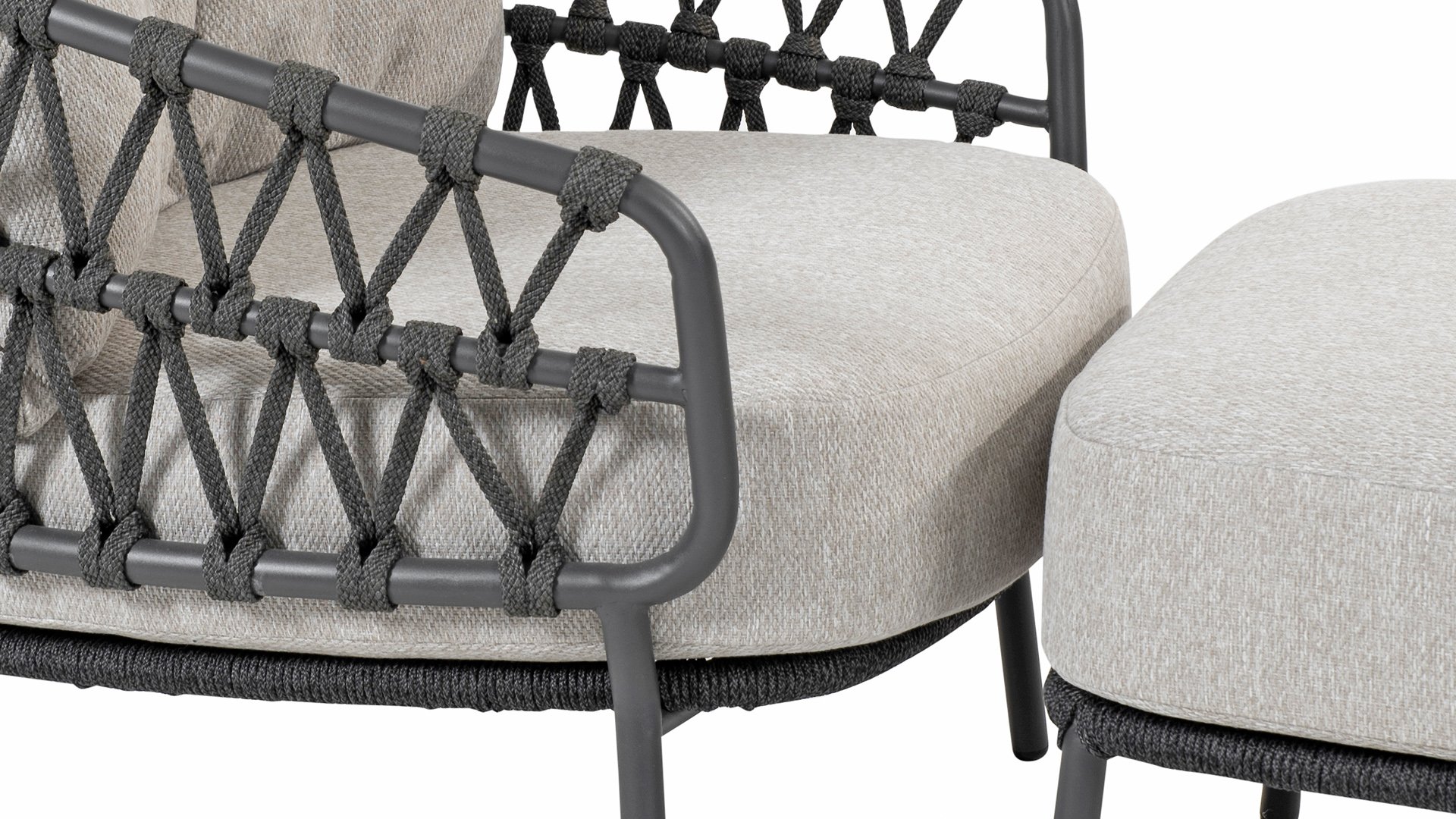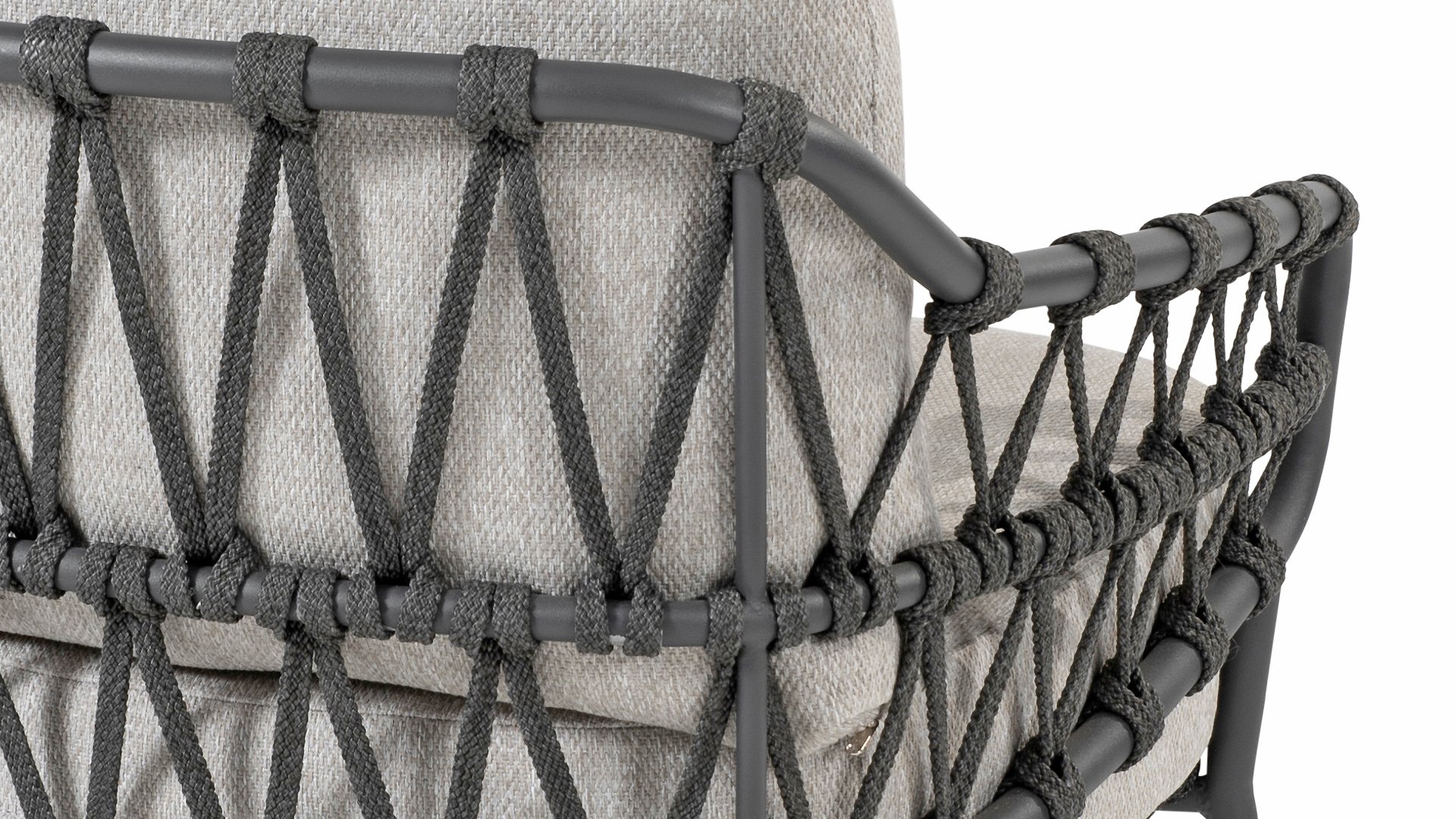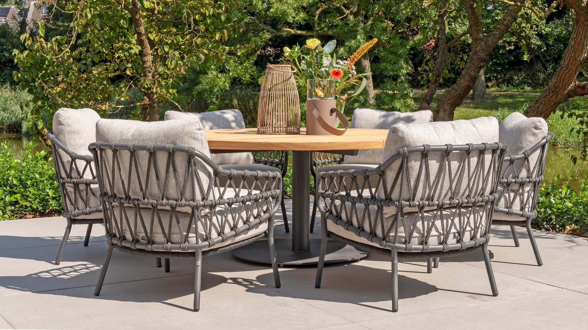 Die Calpi-Serie von 4 Seasons Outdoor hat ein zeitgemäßes Design und verleiht jeder Terrasse den hochwertigen Look, den Sie suchen. Die breiten Ropepartien sind auf originelle Weise gewebt und verleihen dem Calpi einen offenen Charakter. Der 4Seasons Calpi wird mit Kissen aus einem Allwetterstoff geliefert. Dieser Stoff wirkt wasser- und schmutzabweisend und ist somit widerstandsfähig gegen viele Witterungseinflüsse.