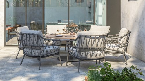 Low Dining liegt zwischen Dining und Lounge und vereint das Beste aus beiden Welten. Die niedrigen Esszimmerstühle haben eine etwas geringere Sitzhöhe als ein normaler Esszimmerstuhl. 4 Seasons Outdoor hat daher einige Tische in der Kollektion, deren Höhe darauf abgestimmt ist. Hier sehen Sie den niedrigen Esstisch Saba, aber Sie können sich auch den niedrigen Esstisch Ambassador ansehen.