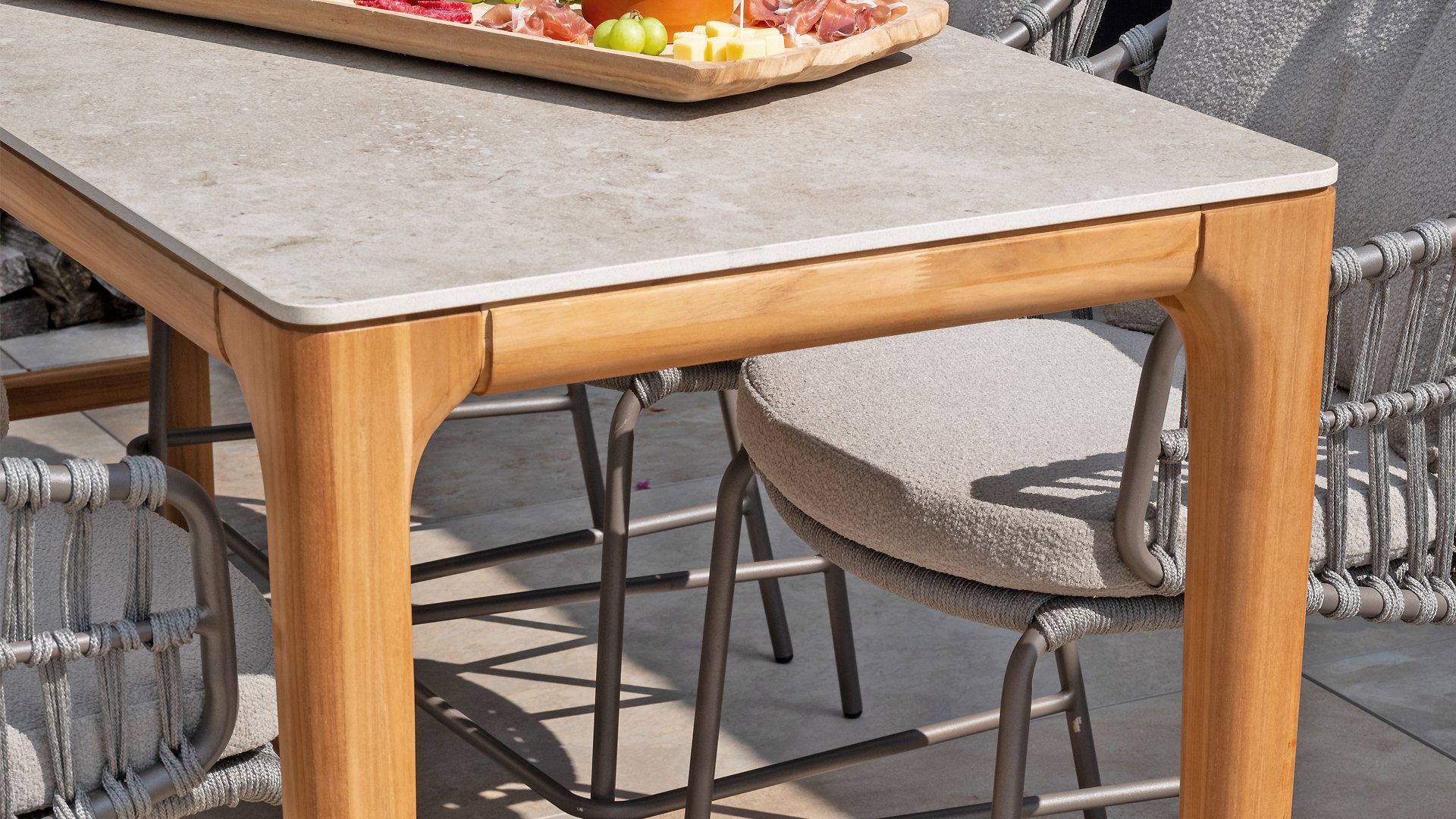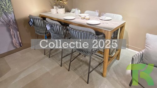 Was diesen Stuhl wirklich einzigartig macht, ist die Kombination aus taupefarbenen Kissen und einem terrafarbenen Rahmen, die eine warme und raffinierte Ausstrahlung verleihen, die zu verschiedenen Außenbereichen passt. Die Kissen sind mit Bouclé bezogen, einem luxuriösen Stoff, der weich und angenehm ist, während er gleichzeitig Olefin enthält - ein Material, das sehr beständig gegen die Ausbleichung durch Sonnenlicht ist und wetterfest ist. Dies macht den 4Seasons Capalbio Counter Chair nicht nur schön, sondern auch praktisch und pflegeleicht. Der Capalbio bietet einige Möglichkeiten, in dieser Serie sind die folgenden Varianten erhältlich: Loungeset, Tuinset, Low-Diningset & Counterset.