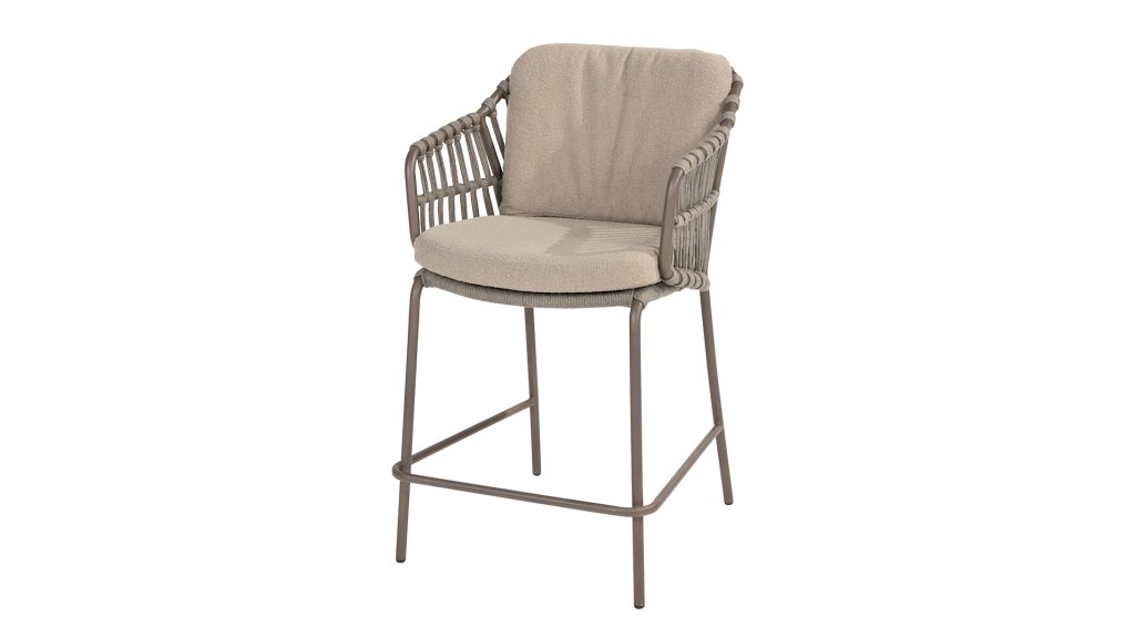 Der 4 Seasons Outdoor Capalbio Counter Chair ist ein stilvoller und funktionaler Stuhl. Dieser Stuhl ist eine perfekte Wahl für diejenigen, die sowohl Komfort als auch Langlebigkeit bei Gartenmöbeln suchen. Der Stuhl ist mit einer Schale aus Seilgewebe teilweise gewebt. Der Rahmen des 4SO Capalbio besteht aus pulverbeschichtetem Edelstahl, was für zusätzliche Stabilität und Langlebigkeit sorgt, selbst unter den anspruchsvollsten Wetterbedingungen.