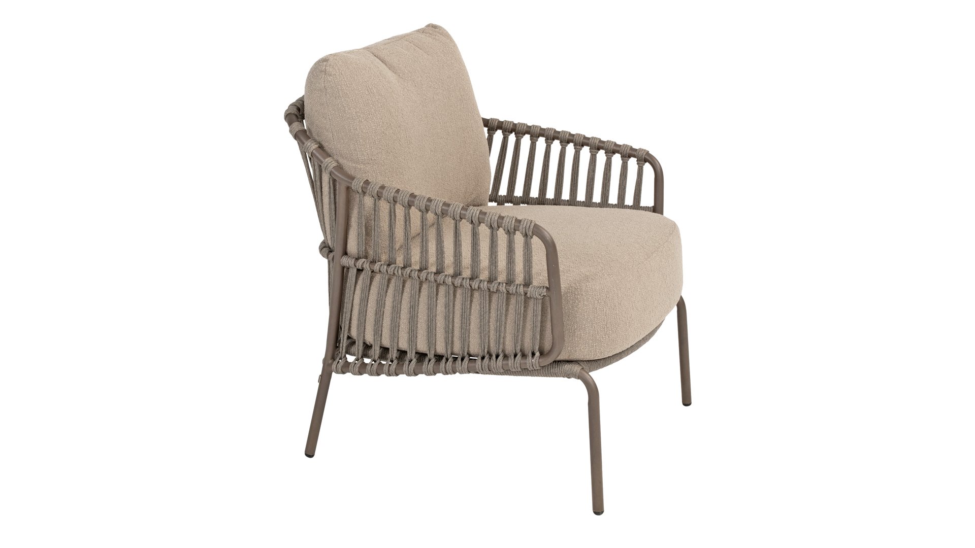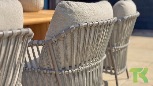 Erleben Sie ultimativen Lounge-Komfort mit dem 4 Seasons Capalbio Low-Dining. Dieser Stuhl wurde entworfen, um Sie mit den extra dicken Kissen aus weichem Bouclé-Stoff zum Träumen zu bringen. Das moderne Design mit seinen eleganten Rundungen und offenen Rope-Mustern verleiht jedem Garten eine stilvolle Note.