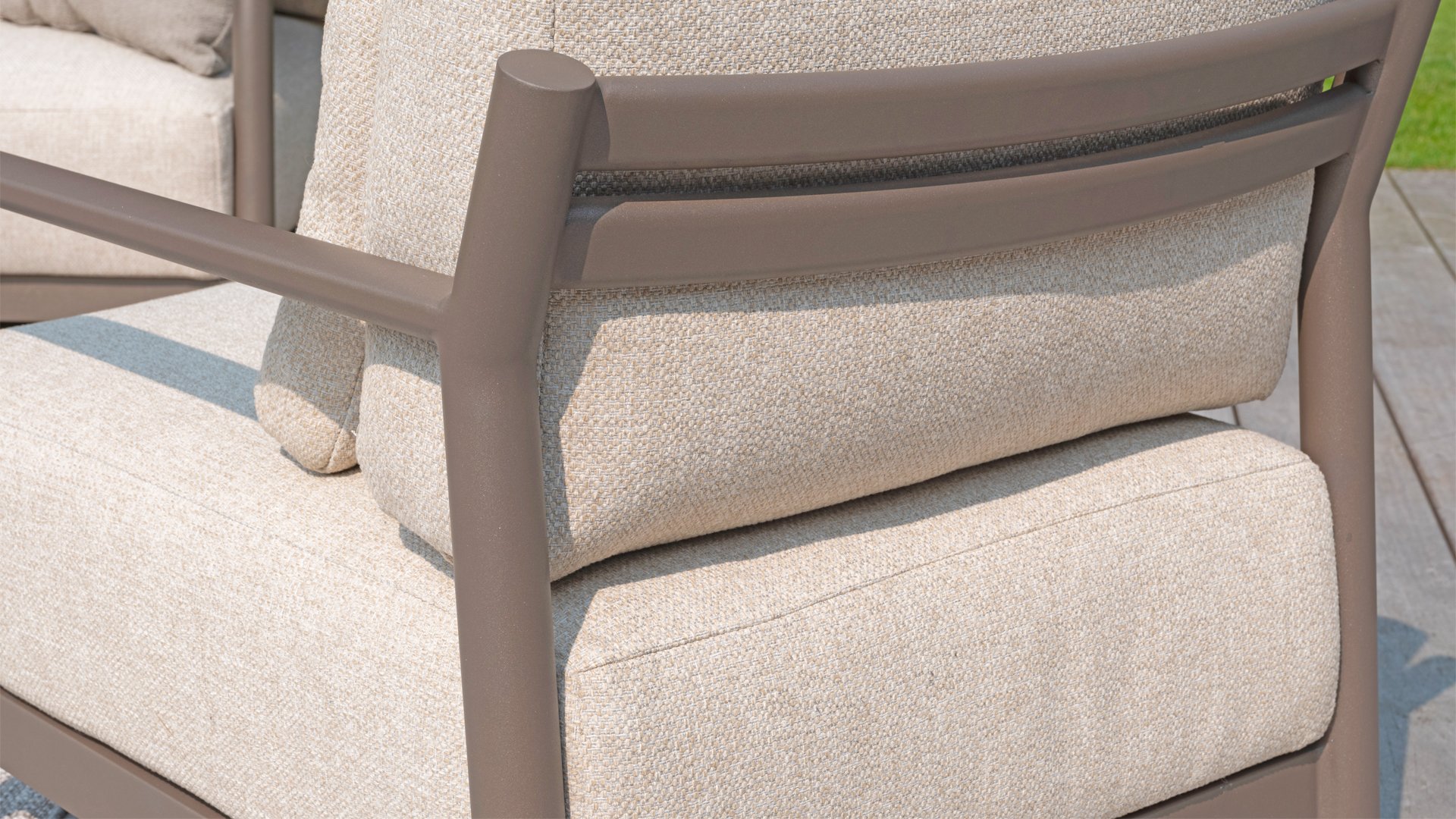 Witterungsbeständiges Material: Der Aluminiumrahmen ist nicht nur witterungsbeständig, sondern auch pflegeleicht. Die Kissen sind zudem so konzipiert, dass sie schnell trocknen und UV-beständig sind.