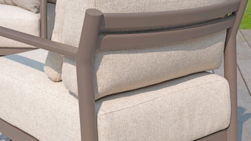 Erleben Sie ultimativen Komfort und stilvolle Schlichtheit mit der Capresi-Loungesets von 4 Seasons Outdoor. Dieses schöne Lounge-Set in der eleganten Terre-Farbe hat ein schlichtes Design, das perfekt zu modernen Gärten passt. Der vollständig aus Aluminium gefertigte Rahmen ist mit erhabenen Kurven gestaltet, während die dicken Lounge-Kissen für einen wunderbaren Kontrast und optimalen Komfort sorgen.