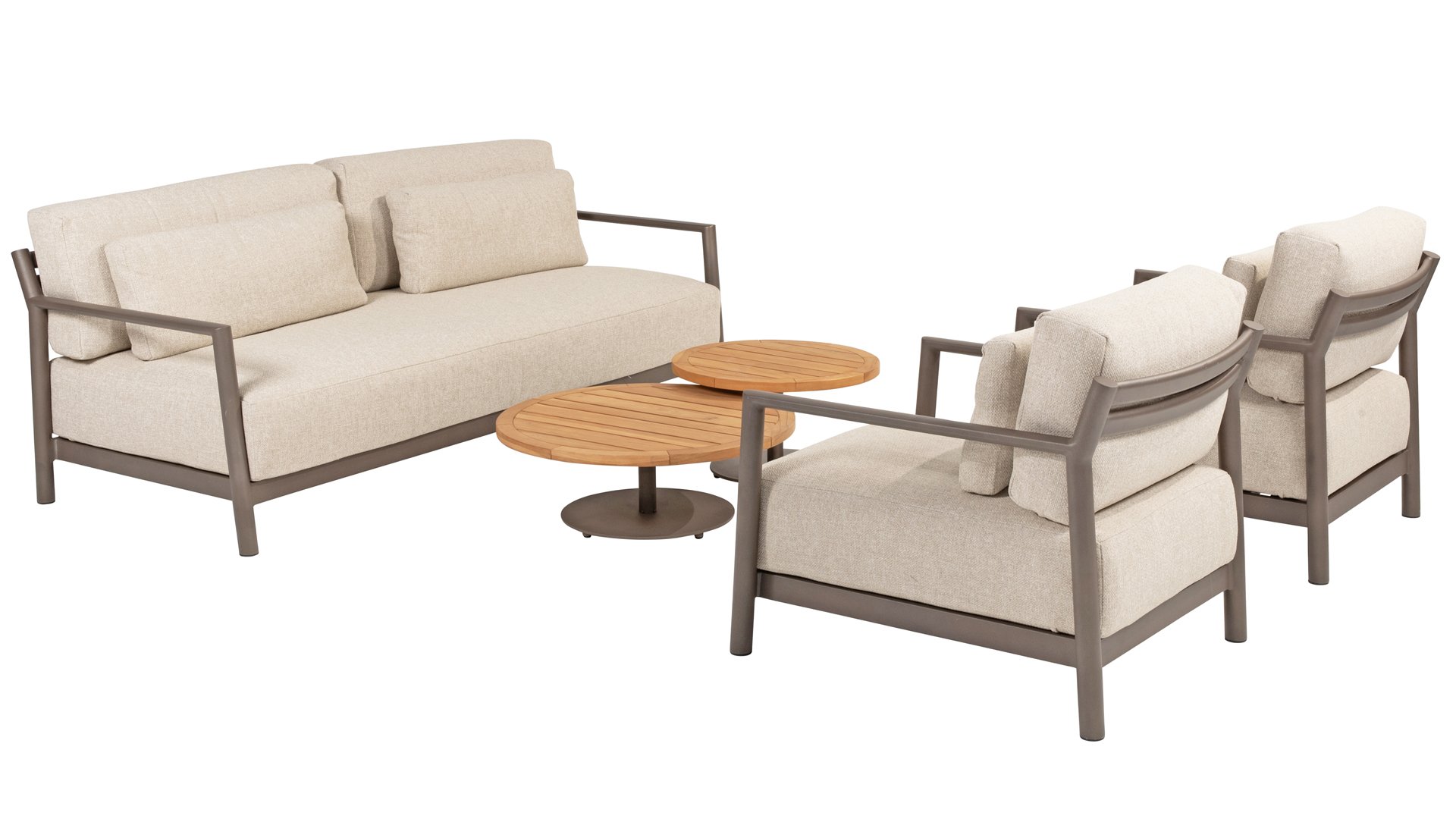 Erleben Sie ultimativen Komfort und stilvolle Schlichtheit mit der Capresi-Loungesets von 4 Seasons Outdoor. Dieses schöne Lounge-Set in der eleganten Terre-Farbe hat ein schlichtes Design, das perfekt zu modernen Gärten passt. Der vollständig aus Aluminium gefertigte Rahmen ist mit erhabenen Kurven gestaltet, während die dicken Lounge-Kissen für einen wunderbaren Kontrast und optimalen Komfort sorgen.