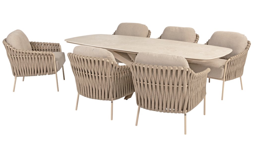1 x 4Seasons Nevada Low Dining Barrel Tisch Ceramic/ Alu Latte 250cm