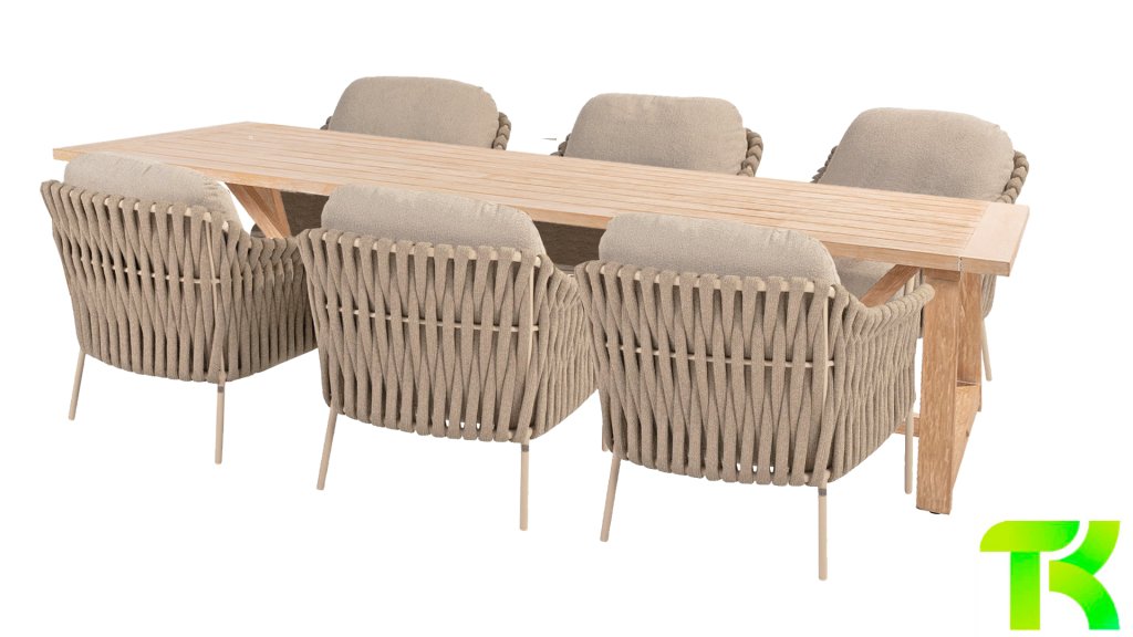 Gartenmöbel aus Teakholz bieten einen atemberaubenden Blick.Teakholz eignet sich besonders gut für den Einsatz im Außenbereich. Es ist resistent gegen Schädlinge und Pilze und widerstandsfähig gegen Sonne, Regen und Schnee. Mit der Zeit entwickelt das Teakholz eine silbergraue Patina. Gartenmöbel aus Teakholz bieten einen atemberaubenden Blick. Darüber hinaus ist es starkes Material und erfordert nur wenig Wartung. Wer die ursprüngliche Farbe des Teakholzes bevorzugt, kann durch regelmäßiges benutzen unser Pflegemittel ganz einfach das Vergrauen des Holzes verhindern.Darüber hinaus können Sie Teak mit grüner Seife reinigen. Durch Temperaturunterschiede und durch den Wechsel von Feuchtigkeit und Trockenheit können kleine Haarrisse entstehen. Es ist üblich, dass Man in dies Unvollkommenheiten findet, diese Unregelmäßigkeiten sind kennzeichnend für dieses Produkt. Diese Unregelmäßigkeiten können nie einen Anlass zu Reklamation, Garantie oder Claim formen. Es betrifft eine Unterschrift von Originalität!  Wir gewähren Garantie auf alle Produktions- und Konstruktionsfehler. Die Wirkung von Teakholz ist nicht enthalten. Wenn Sie sich für Teakholz entscheiden, erwarten wir, dass Sie diese Eigenschaften zu schätzen wissen. Eventuell auftretende Haarrisse, Äste im Teakholz und raue Oberflächen im Laufe der Zeit fallen nicht unter unsere Garantie. Diese Eigenschaften verleihen dem Teakholz seinen eigenen Charakter und sind Teil der Optik. Seien Sie vorsichtig mit einem Blumentopf oder einer Vase auf Ihrem Gartentisch aus Teakholz, da dies zu hartnäckigen Kreisen oder Farbunterschieden führen kann.