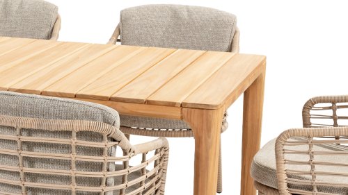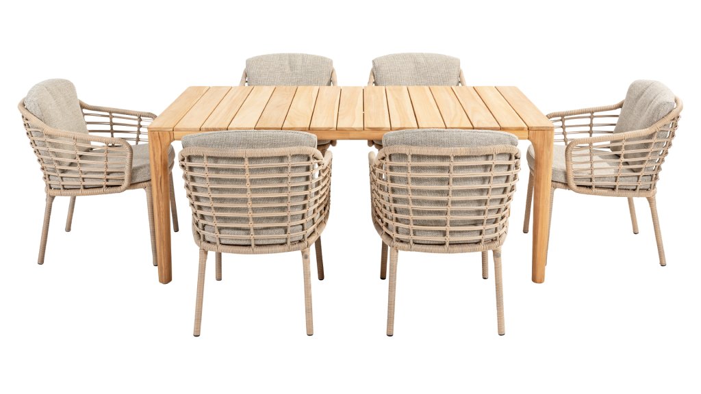 Gartenmöbel aus Teakholz bieten einen atemberaubenden Blick.Teakholz eignet sich besonders gut für den Einsatz im Außenbereich. Es ist resistent gegen Schädlinge und Pilze und widerstandsfähig gegen Sonne, Regen und Schnee. Mit der Zeit entwickelt das Teakholz eine silbergraue Patina. Gartenmöbel aus Teakholz bieten einen atemberaubenden Blick. Darüber hinaus ist es starkes Material und erfordert nur wenig Wartung. Wer die ursprüngliche Farbe des Teakholzes bevorzugt, kann durch regelmäßiges benutzen unser Pflegemittel ganz einfach das Vergrauen des Holzes verhindern.Darüber hinaus können Sie Teak mit grüner Seife reinigen. Durch Temperaturunterschiede und durch den Wechsel von Feuchtigkeit und Trockenheit können kleine Haarrisse entstehen. Es ist üblich, dass Man in dies Unvollkommenheiten findet, diese Unregelmäßigkeiten sind kennzeichnend für dieses Produkt. Diese Unregelmäßigkeiten können nie einen Anlass zu Reklamation, Garantie oder Claim formen. Es betrifft eine Unterschrift von Originalität! Wir gewähren Garantie auf alle Produktions- und Konstruktionsfehler. Die Wirkung von Teakholz ist nicht enthalten. Wenn Sie sich für Teakholz entscheiden, erwarten wir, dass Sie diese Eigenschaften zu schätzen wissen. Eventuell auftretende Haarrisse, Äste im Teakholz und raue Oberflächen im Laufe der Zeit fallen nicht unter unsere Garantie. Diese Eigenschaften verleihen dem Teakholz seinen eigenen Charakter und sind Teil der Optik. Seien Sie vorsichtig mit einem Blumentopf oder einer Vase auf Ihrem Gartentisch aus Teakholz, da dies zu hartnäckigen Kreisen oder Farbunterschieden führen kann.