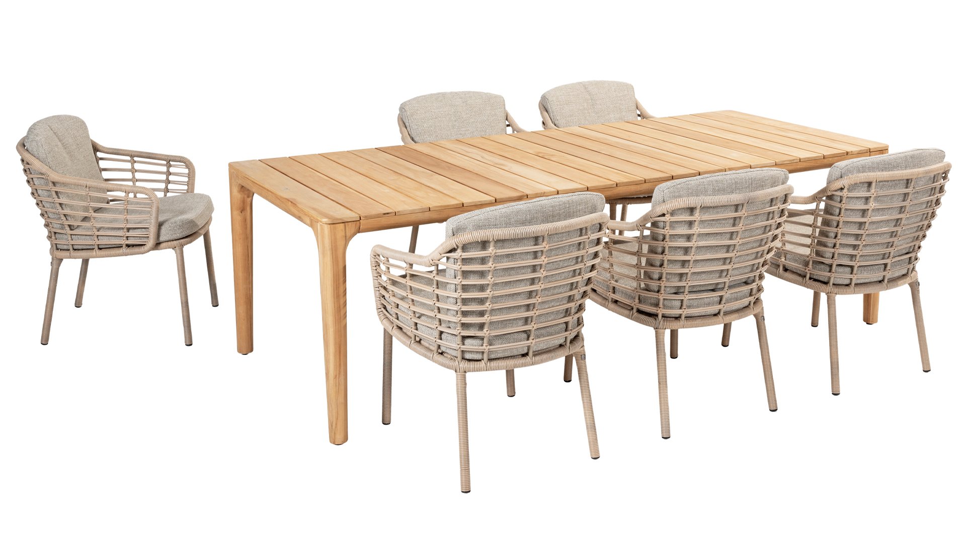 Gartenmöbel aus Teakholz bieten einen atemberaubenden Blick.Teakholz eignet sich besonders gut für den Einsatz im Außenbereich. Es ist resistent gegen Schädlinge und Pilze und widerstandsfähig gegen Sonne, Regen und Schnee. Mit der Zeit entwickelt das Teakholz eine silbergraue Patina. Gartenmöbel aus Teakholz bieten einen atemberaubenden Blick. Darüber hinaus ist es starkes Material und erfordert nur wenig Wartung. Wer die ursprüngliche Farbe des Teakholzes bevorzugt, kann durch regelmäßiges benutzen unser Pflegemittel ganz einfach das Vergrauen des Holzes verhindern.Darüber hinaus können Sie Teak mit grüner Seife reinigen. Durch Temperaturunterschiede und durch den Wechsel von Feuchtigkeit und Trockenheit können kleine Haarrisse entstehen. Es ist üblich, dass Man in dies Unvollkommenheiten findet, diese Unregelmäßigkeiten sind kennzeichnend für dieses Produkt. Diese Unregelmäßigkeiten können nie einen Anlass zu Reklamation, Garantie oder Claim formen. Es betrifft eine Unterschrift von Originalität!  Wir gewähren Garantie auf alle Produktions- und Konstruktionsfehler. Die Wirkung von Teakholz ist nicht enthalten. Wenn Sie sich für Teakholz entscheiden, erwarten wir, dass Sie diese Eigenschaften zu schätzen wissen. Eventuell auftretende Haarrisse, Äste im Teakholz und raue Oberflächen im Laufe der Zeit fallen nicht unter unsere Garantie. Diese Eigenschaften verleihen dem Teakholz seinen eigenen Charakter und sind Teil der Optik. Seien Sie vorsichtig mit einem Blumentopf oder einer Vase auf Ihrem Gartentisch aus Teakholz, da dies zu hartnäckigen Kreisen oder Farbunterschieden führen kann.