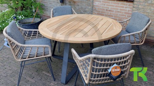 Dieses wunderschön gestaltete Cottage Gartenset von 4 Seasons Outdoor bietet ein minimalistisches Design mit schönen Details. Die Taupe Farben in Kombination mit dem Teakholz schafft einen modernen Stil mit natürlicher Note. Die passenden Sitz-und Rückenkissen bieten einen angenehmen Komfort, so dass Sie sich in Ihrem eigenen Garten entspannen können.