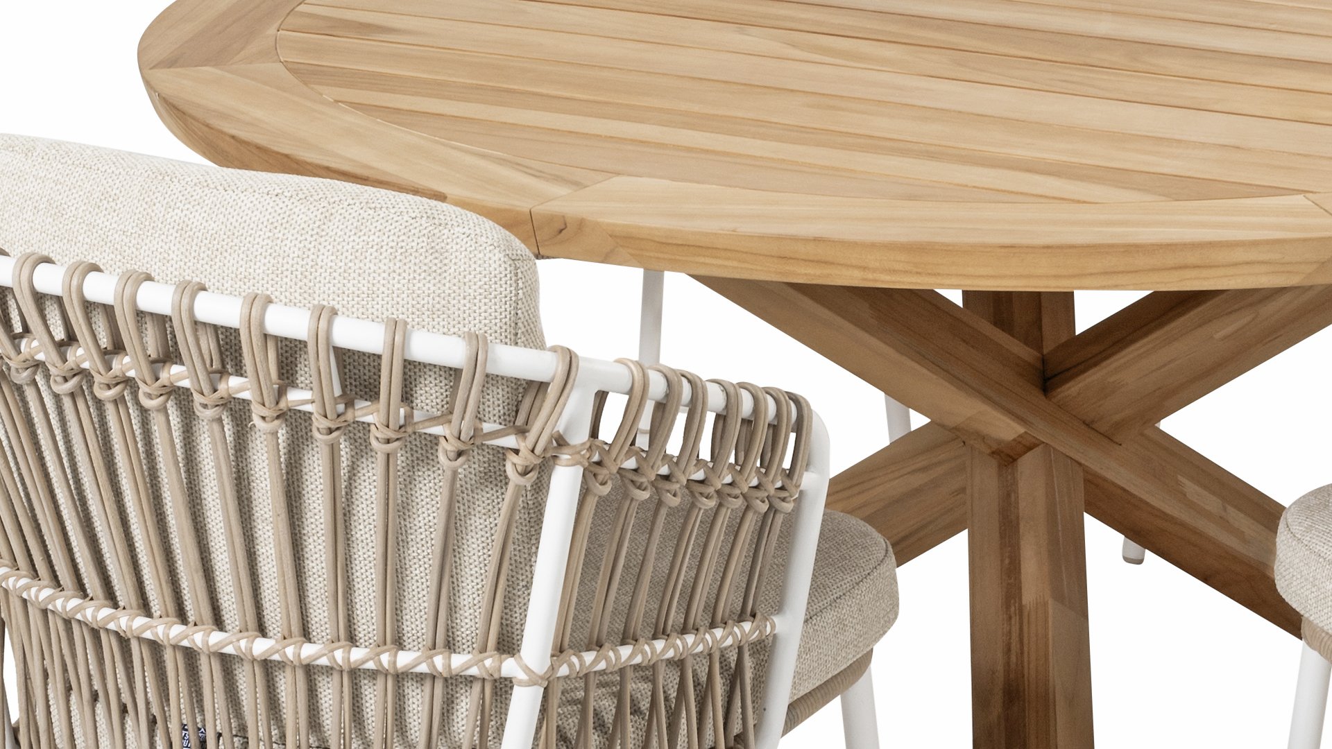 Gartenmöbel aus Teakholz bieten einen atemberaubenden Blick.Teakholz eignet sich besonders gut für den Einsatz im Außenbereich. Es ist resistent gegen Schädlinge und Pilze und widerstandsfähig gegen Sonne, Regen und Schnee. Mit der Zeit entwickelt das Teakholz eine silbergraue Patina. Gartenmöbel aus Teakholz bieten einen atemberaubenden Blick. Darüber hinaus ist es starkes Material und erfordert nur wenig Wartung. Wer die ursprüngliche Farbe des Teakholzes bevorzugt, kann durch regelmäßiges benutzen unser Pflegemittel ganz einfach das Vergrauen des Holzes verhindern.Darüber hinaus können Sie Teak mit grüner Seife reinigen. Durch Temperaturunterschiede und durch den Wechsel von Feuchtigkeit und Trockenheit können kleine Haarrisse entstehen. Es ist üblich, dass Man in dies Unvollkommenheiten findet, diese Unregelmäßigkeiten sind kennzeichnend für dieses Produkt. Diese Unregelmäßigkeiten können nie einen Anlass zu Reklamation, Garantie oder Claim formen. Es betrifft eine Unterschrift von Originalität!  Wir gewähren Garantie auf alle Produktions- und Konstruktionsfehler. Die Wirkung von Teakholz ist nicht enthalten. Wenn Sie sich für Teakholz entscheiden, erwarten wir, dass Sie diese Eigenschaften zu schätzen wissen. Eventuell auftretende Haarrisse, Äste im Teakholz und raue Oberflächen im Laufe der Zeit fallen nicht unter unsere Garantie. Diese Eigenschaften verleihen dem Teakholz seinen eigenen Charakter und sind Teil der Optik. Seien Sie vorsichtig mit einem Blumentopf oder einer Vase auf Ihrem Gartentisch aus Teakholz, da dies zu hartnäckigen Kreisen oder Farbunterschieden führen kann.