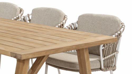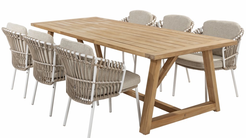 Gartenmöbel aus Teakholz bieten einen atemberaubenden Blick.Teakholz eignet sich besonders gut für den Einsatz im Außenbereich. Es ist resistent gegen Schädlinge und Pilze und widerstandsfähig gegen Sonne, Regen und Schnee. Mit der Zeit entwickelt das Teakholz eine silbergraue Patina. Gartenmöbel aus Teakholz bieten einen atemberaubenden Blick. Darüber hinaus ist es starkes Material und erfordert nur wenig Wartung. Wer die ursprüngliche Farbe des Teakholzes bevorzugt, kann durch regelmäßiges benutzen unser Pflegemittel ganz einfach das Vergrauen des Holzes verhindern.Darüber hinaus können Sie Teak mit grüner Seife reinigen. Durch Temperaturunterschiede und durch den Wechsel von Feuchtigkeit und Trockenheit können kleine Haarrisse entstehen. Es ist üblich, dass Man in dies Unvollkommenheiten findet, diese Unregelmäßigkeiten sind kennzeichnend für dieses Produkt. Diese Unregelmäßigkeiten können nie einen Anlass zu Reklamation, Garantie oder Claim formen. Es betrifft eine Unterschrift von Originalität! Wir gewähren Garantie auf alle Produktions- und Konstruktionsfehler. Die Wirkung von Teakholz ist nicht enthalten. Wenn Sie sich für Teakholz entscheiden, erwarten wir, dass Sie diese Eigenschaften zu schätzen wissen. Eventuell auftretende Haarrisse, Äste im Teakholz und raue Oberflächen im Laufe der Zeit fallen nicht unter unsere Garantie. Diese Eigenschaften verleihen dem Teakholz seinen eigenen Charakter und sind Teil der Optik. Seien Sie vorsichtig mit einem Blumentopf oder einer Vase auf Ihrem Gartentisch aus Teakholz, da dies zu hartnäckigen Kreisen oder Farbunterschieden führen kann.