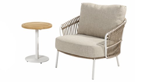 1 x 4 Seasons Outdoor Volta Beistelltisch Teak/Alu White Ø45xH55cm