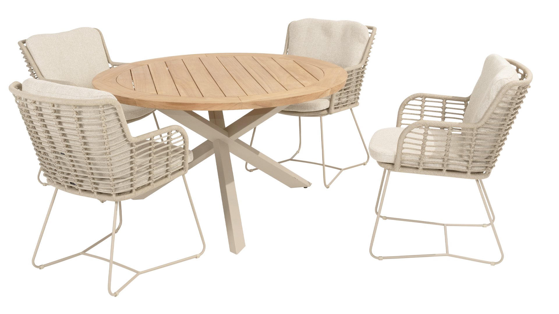 Das Flaggschiff der Kollektion, so kann man diesen Tisch ruhig bezeichnen. Das hochwertige Teakholz in Kombination mit dem schönen Kreuzfuß machen diesen Taste by 4Seasons Prado Ø130cm Tisch zu einem Schmuckstück. Er lässt sich mit nahezu jedem Esszimmerstuhl aus unserer Kollektion kombinieren, sodass für jeden Geschmack etwas dabei ist. Optional kann er mit Prado Lazy Susan kombiniert werden. Die Platte ist sowohl in Teakholz als auch in Keramik erhältlich. Der Prado mit Teakholzplatte ist mit den Tischbeinen Teak, Latte und Anthrazit erhältlich. Sie lieben Keramik? Dann entdecken Sie hier den Prado Keramik mit den Tischbeinen Terre & Latte.
