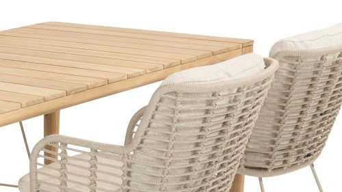 Gartenmöbel aus Teakholz bieten einen atemberaubenden Blick.Teakholz eignet sich besonders gut für den Einsatz im Außenbereich. Es ist resistent gegen Schädlinge und Pilze und widerstandsfähig gegen Sonne, Regen und Schnee. Mit der Zeit entwickelt das Teakholz eine silbergraue Patina. Gartenmöbel aus Teakholz bieten einen atemberaubenden Blick. Darüber hinaus ist es starkes Material und erfordert nur wenig Wartung. Wer die ursprüngliche Farbe des Teakholzes bevorzugt, kann durch regelmäßiges benutzen unser Pflegemittel ganz einfach das Vergrauen des Holzes verhindern.Darüber hinaus können Sie Teak mit grüner Seife reinigen. Durch Temperaturunterschiede und durch den Wechsel von Feuchtigkeit und Trockenheit können kleine Haarrisse entstehen. Es ist üblich, dass Man in dies Unvollkommenheiten findet, diese Unregelmäßigkeiten sind kennzeichnend für dieses Produkt. Diese Unregelmäßigkeiten können nie einen Anlass zu Reklamation, Garantie oder Claim formen. Es betrifft eine Unterschrift von Originalität!  Wir gewähren Garantie auf alle Produktions- und Konstruktionsfehler. Die Wirkung von Teakholz ist nicht enthalten. Wenn Sie sich für Teakholz entscheiden, erwarten wir, dass Sie diese Eigenschaften zu schätzen wissen. Eventuell auftretende Haarrisse, Äste im Teakholz und raue Oberflächen im Laufe der Zeit fallen nicht unter unsere Garantie. Diese Eigenschaften verleihen dem Teakholz seinen eigenen Charakter und sind Teil der Optik. Seien Sie vorsichtig mit einem Blumentopf oder einer Vase auf Ihrem Gartentisch aus Teakholz, da dies zu hartnäckigen Kreisen oder Farbunterschieden führen kann.