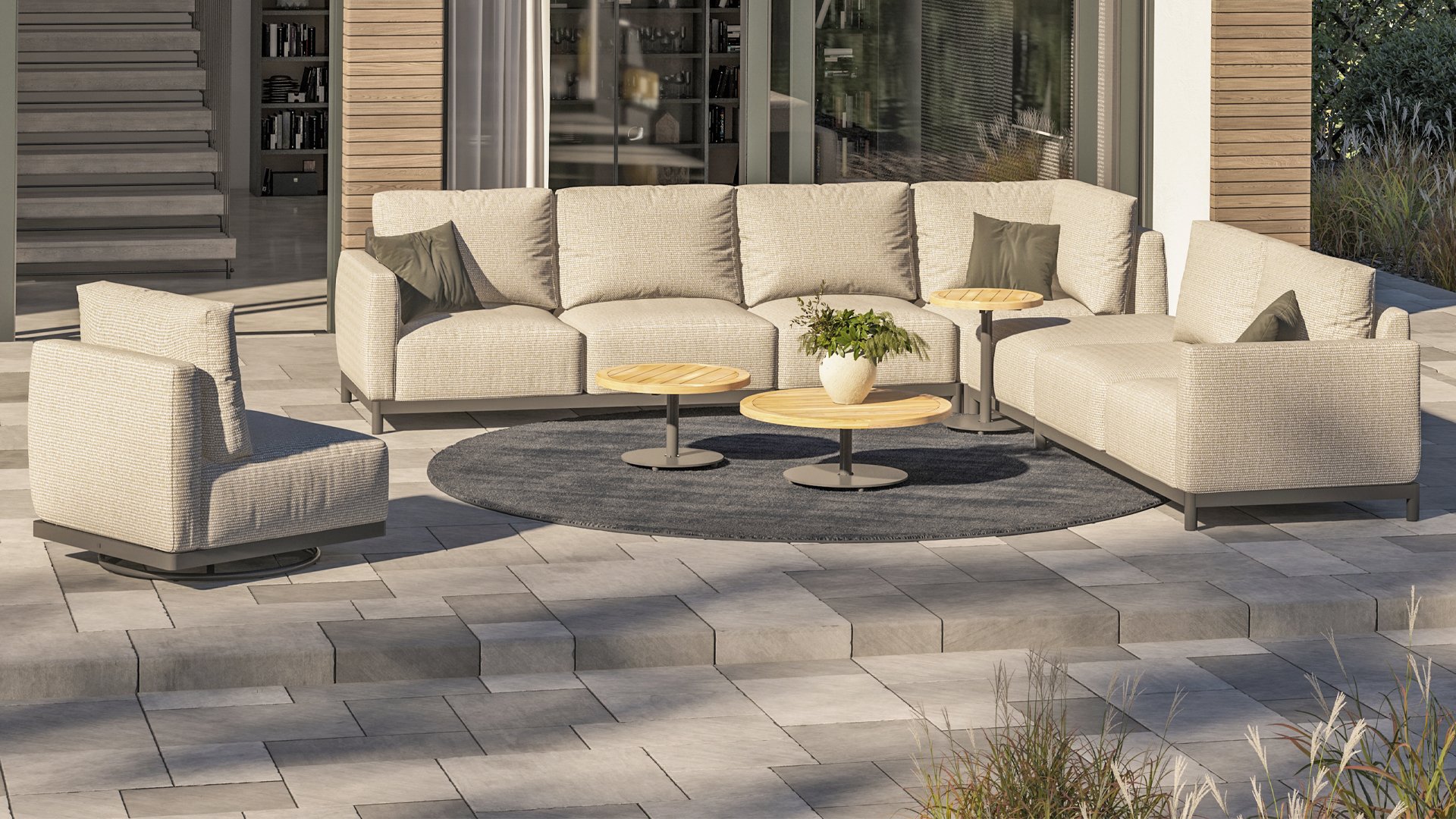 • Modernes Aussehen: Das Furore Loungeset verfügt über ein zeitgemäßes Design, das nahtlos in jeden Außenbereich passt. Seine klaren Linien und raffinierte Verarbeitung verleihen Ihrem Garten ein modernes Ambiente.