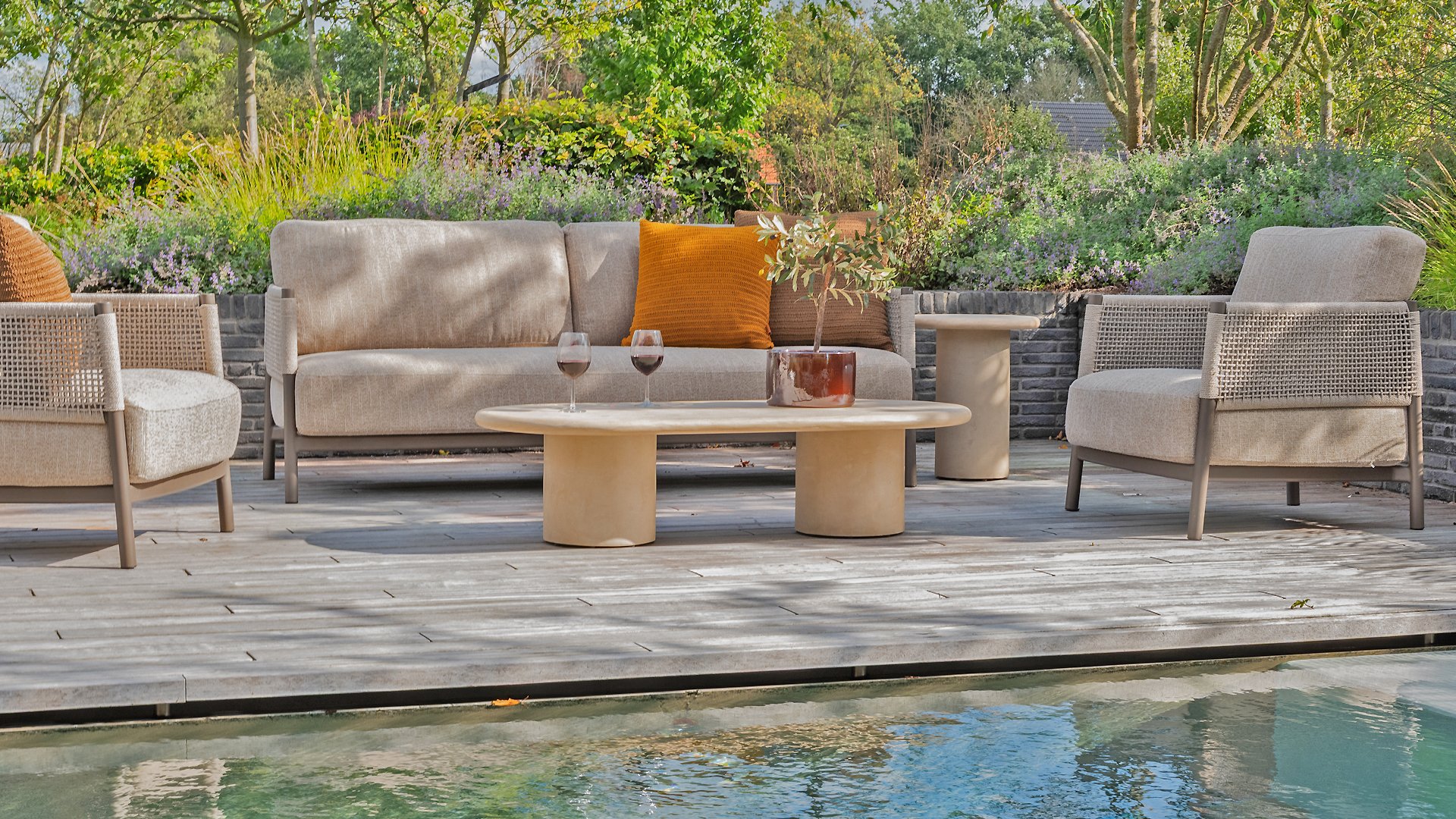 Entdecken Sie die Hampton Kaffeetische, eine stilvolle Ergänzung der beliebten Hampton-Serie. Diese eleganten Tische vereinen edles Design und natürliche Optik mit der Funktionalität kompakter Abmessungen. Hergestellt aus hochwertigem Mortex in einem ruhigen Beige-Weiß-Ton, verleihen sie jedem Lounge-Bereich oder jeder Terrasse Ruhe und Charakter.