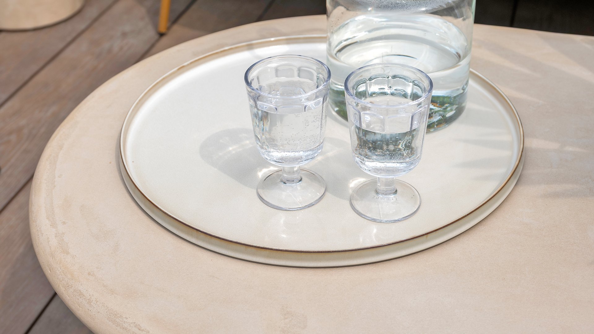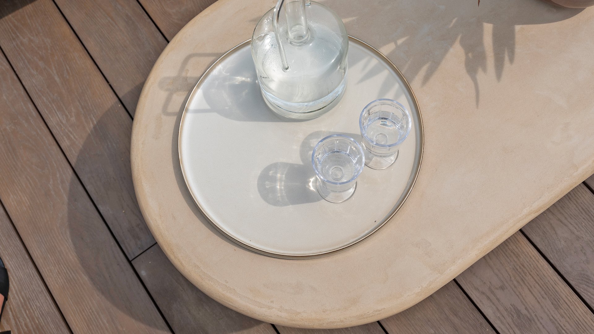 Mortex besteht aus einer Mischung aus Kalk, Zement und feinen Mineralpulvern. Pigmente und Harze werden dieser Mischung zugesetzt, um sie flexibel, wasserfest und haftfest zu machen. Sie wird von Hand in dünnen Schichten aufgetragen, anschließend geschliffen und mit einer Schutzversiegelung oder Wachs versiegelt. So entsteht eine nahtlose, robuste und stilvolle Oberfläche, die sich unter anderem für Möbel, Böden und Wände eignet. Ein Mortex-Gartentisch ist wetterfest. Regen, Sonnenlicht und Temperaturschwankungen können dem Material kaum etwas anhaben, sofern der Tisch ordnungsgemäß mit einer Schutzschicht versehen ist. Vorsicht ist jedoch bei säurehaltigen Substanzen wie Zitronensaft, Essig oder Wein geboten. Bleiben diese zu lange auf der Oberfläche, können sie die Schutzschicht beschädigen und Flecken verursachen.