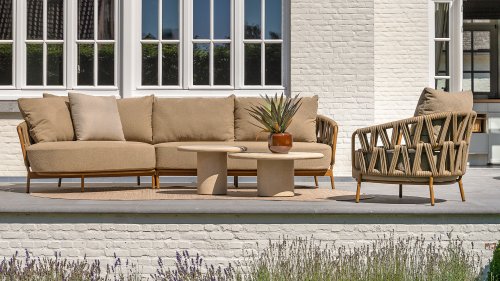 Entdecken Sie die Hampton Kaffeetische, eine stilvolle Ergänzung der beliebten Hampton-Serie. Diese eleganten Tische vereinen edles Design und natürliche Optik mit der Funktionalität kompakter Abmessungen. Hergestellt aus hochwertigem Mortex in einem ruhigen Beige-Weiß-Ton, verleihen sie jedem Lounge-Bereich oder jeder Terrasse Ruhe und Charakter.