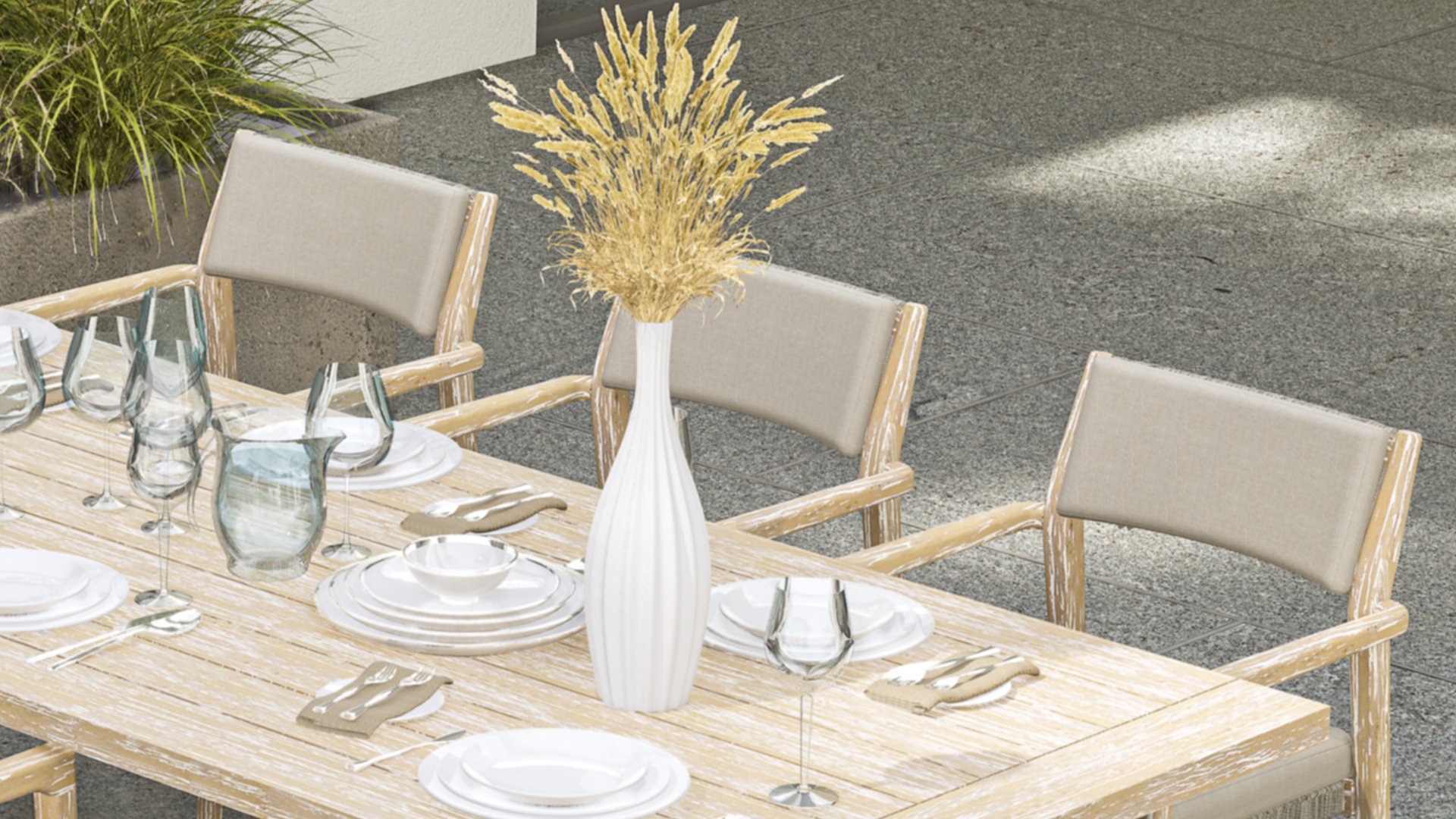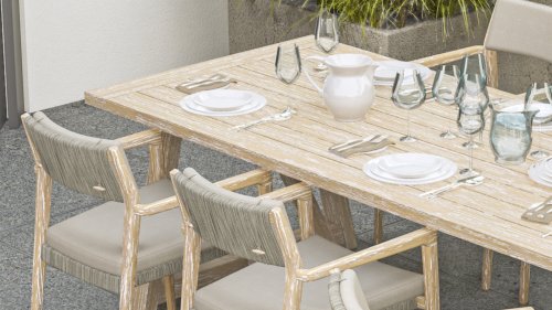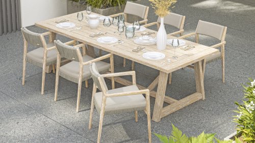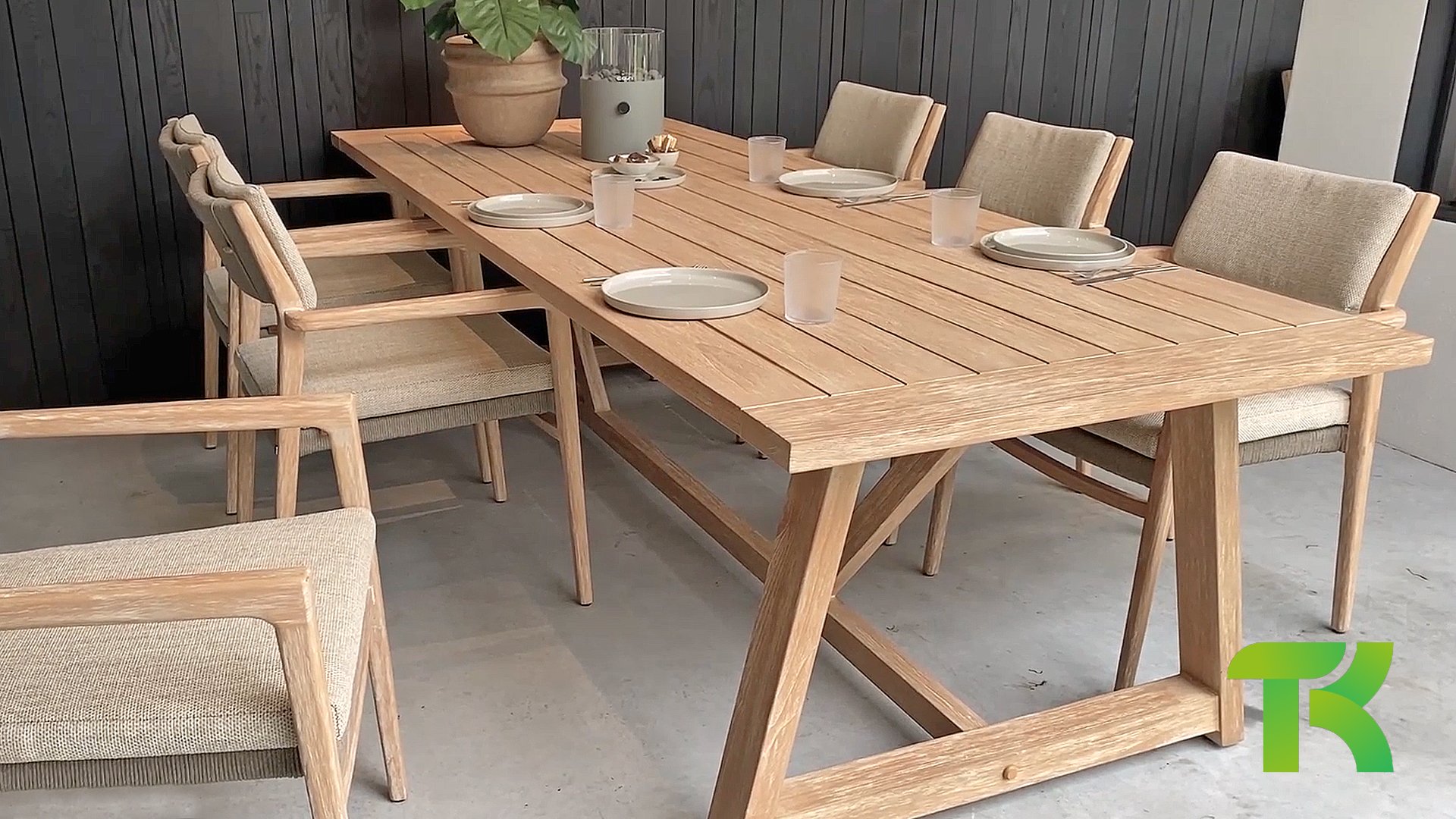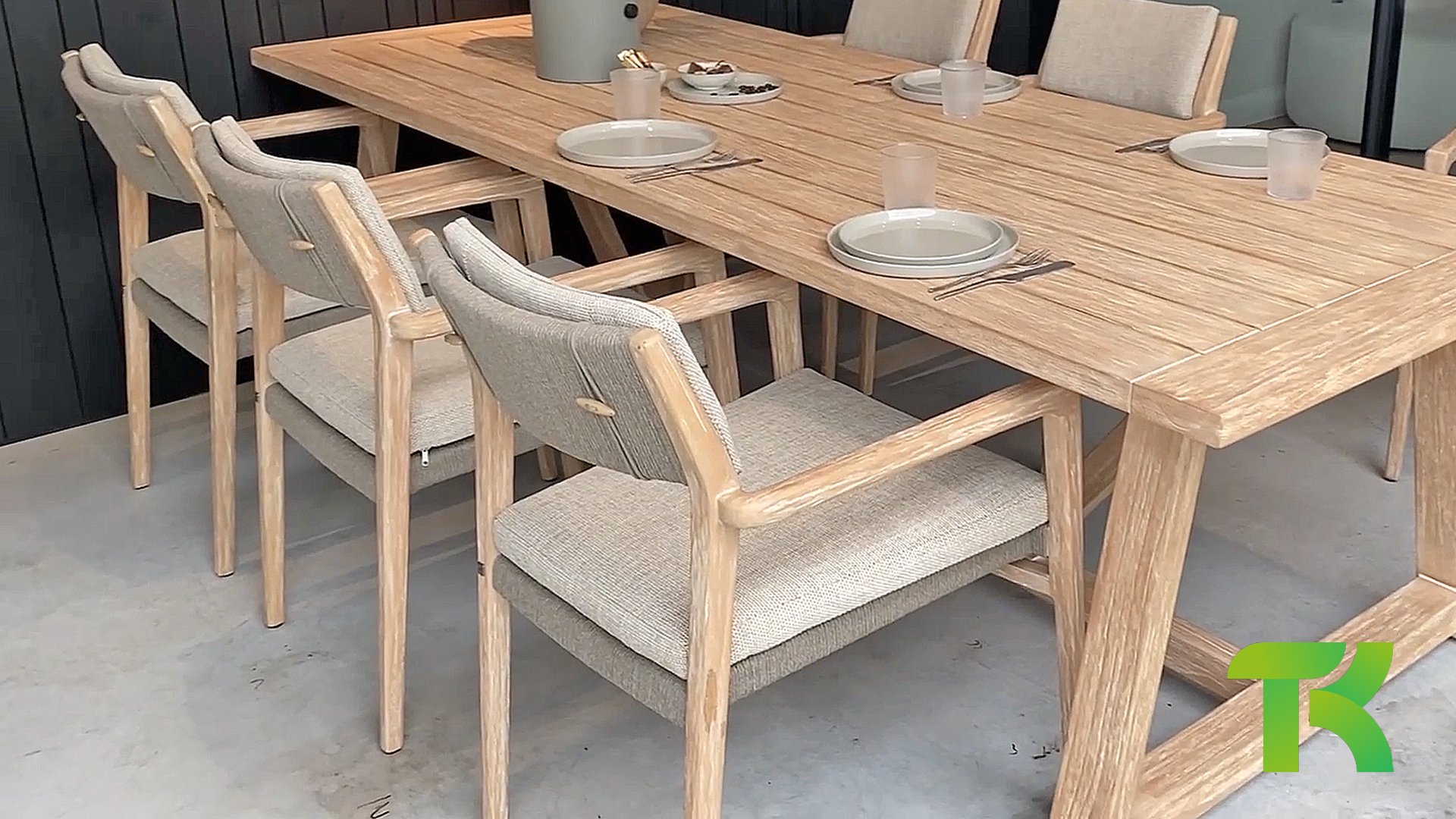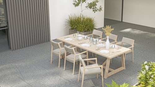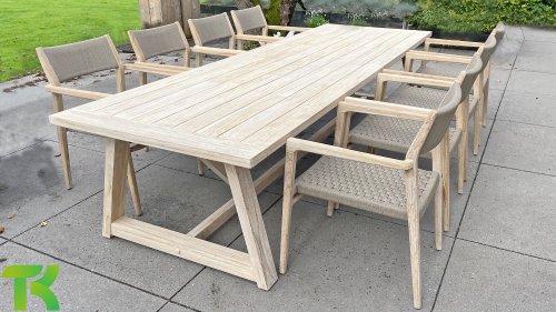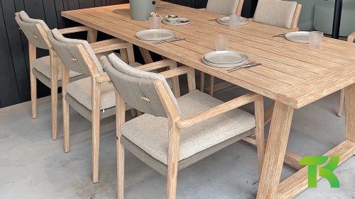 Gartenmöbel aus Teakholz bieten einen atemberaubenden Blick.Teakholz eignet sich besonders gut für den Einsatz im Außenbereich. Es ist resistent gegen Schädlinge und Pilze und widerstandsfähig gegen Sonne, Regen und Schnee. Mit der Zeit entwickelt das Teakholz eine silbergraue Patina. Gartenmöbel aus Teakholz bieten einen atemberaubenden Blick. Darüber hinaus ist es starkes Material und erfordert nur wenig Wartung. Wer die ursprüngliche Farbe des Teakholzes bevorzugt, kann durch regelmäßiges benutzen unser Pflegemittel ganz einfach das Vergrauen des Holzes verhindern.Darüber hinaus können Sie Teak mit grüner Seife reinigen. Durch Temperaturunterschiede und durch den Wechsel von Feuchtigkeit und Trockenheit können kleine Haarrisse entstehen. Es ist üblich, dass Man in dies Unvollkommenheiten findet, diese Unregelmäßigkeiten sind kennzeichnend für dieses Produkt. Diese Unregelmäßigkeiten können nie einen Anlass zu Reklamation, Garantie oder Claim formen. Es betrifft eine Unterschrift von Originalität! Wir gewähren Garantie auf alle Produktions- und Konstruktionsfehler. Die Wirkung von Teakholz ist nicht enthalten. Wenn Sie sich für Teakholz entscheiden, erwarten wir, dass Sie diese Eigenschaften zu schätzen wissen. Eventuell auftretende Haarrisse, Äste im Teakholz und raue Oberflächen im Laufe der Zeit fallen nicht unter unsere Garantie. Diese Eigenschaften verleihen dem Teakholz seinen eigenen Charakter und sind Teil der Optik. Seien Sie vorsichtig mit einem Blumentopf oder einer Vase auf Ihrem Gartentisch aus Teakholz, da dies zu hartnäckigen Kreisen oder Farbunterschieden führen kann.