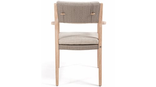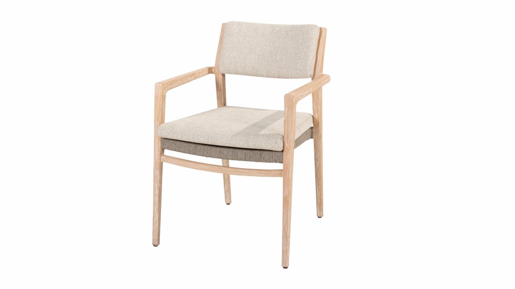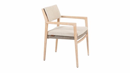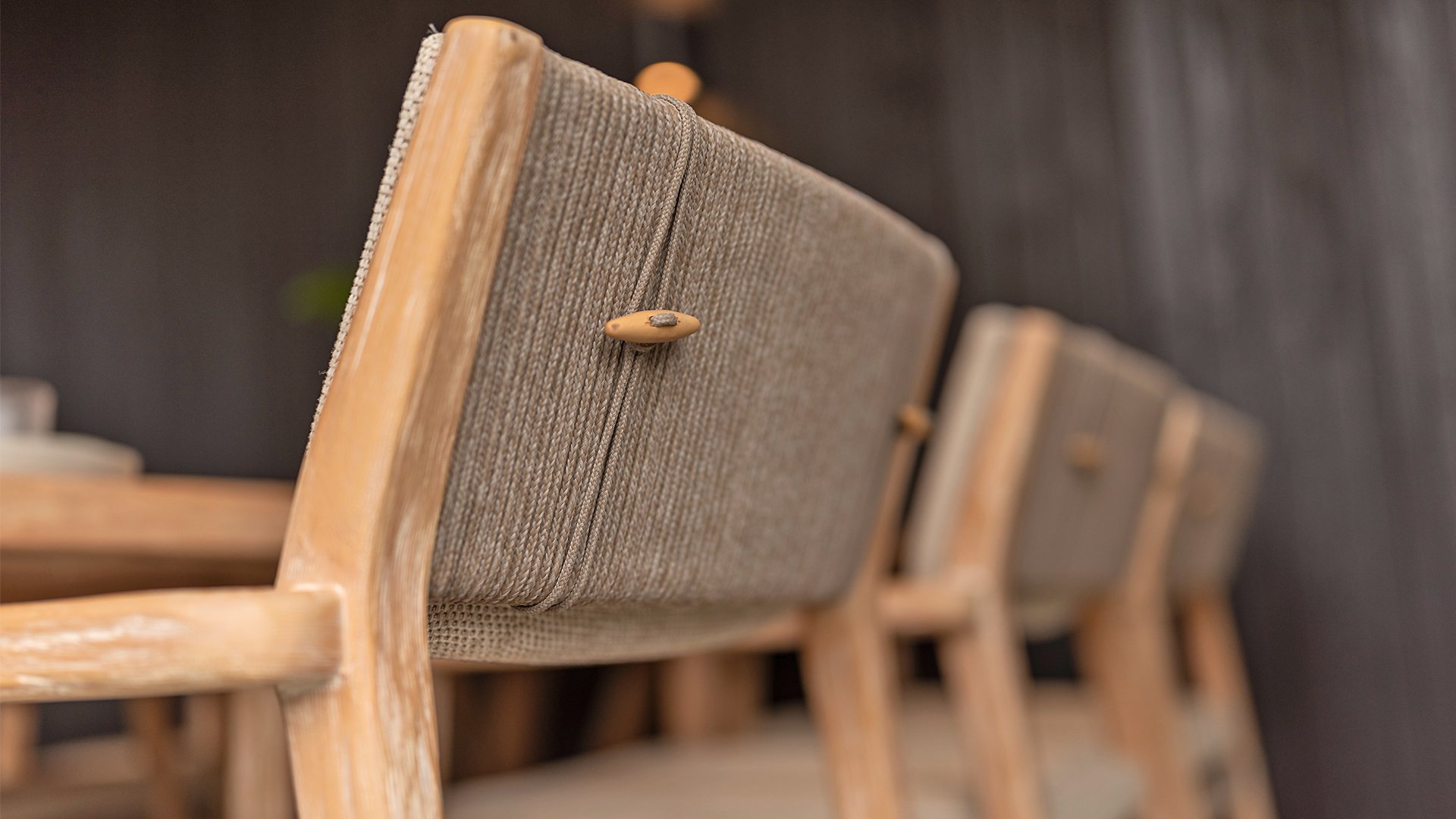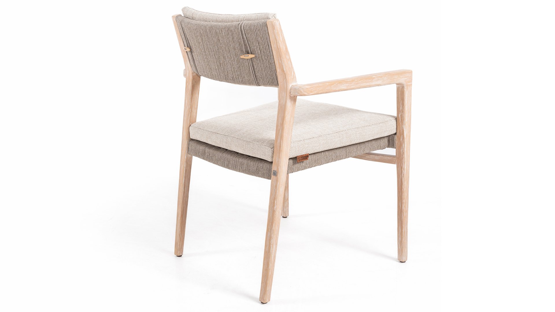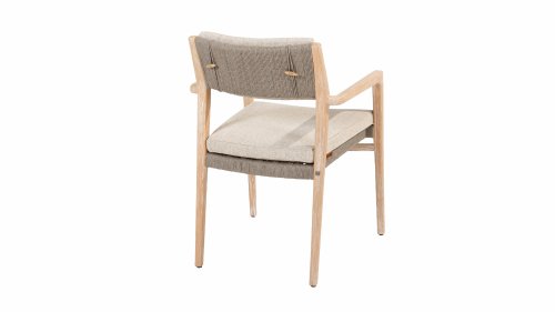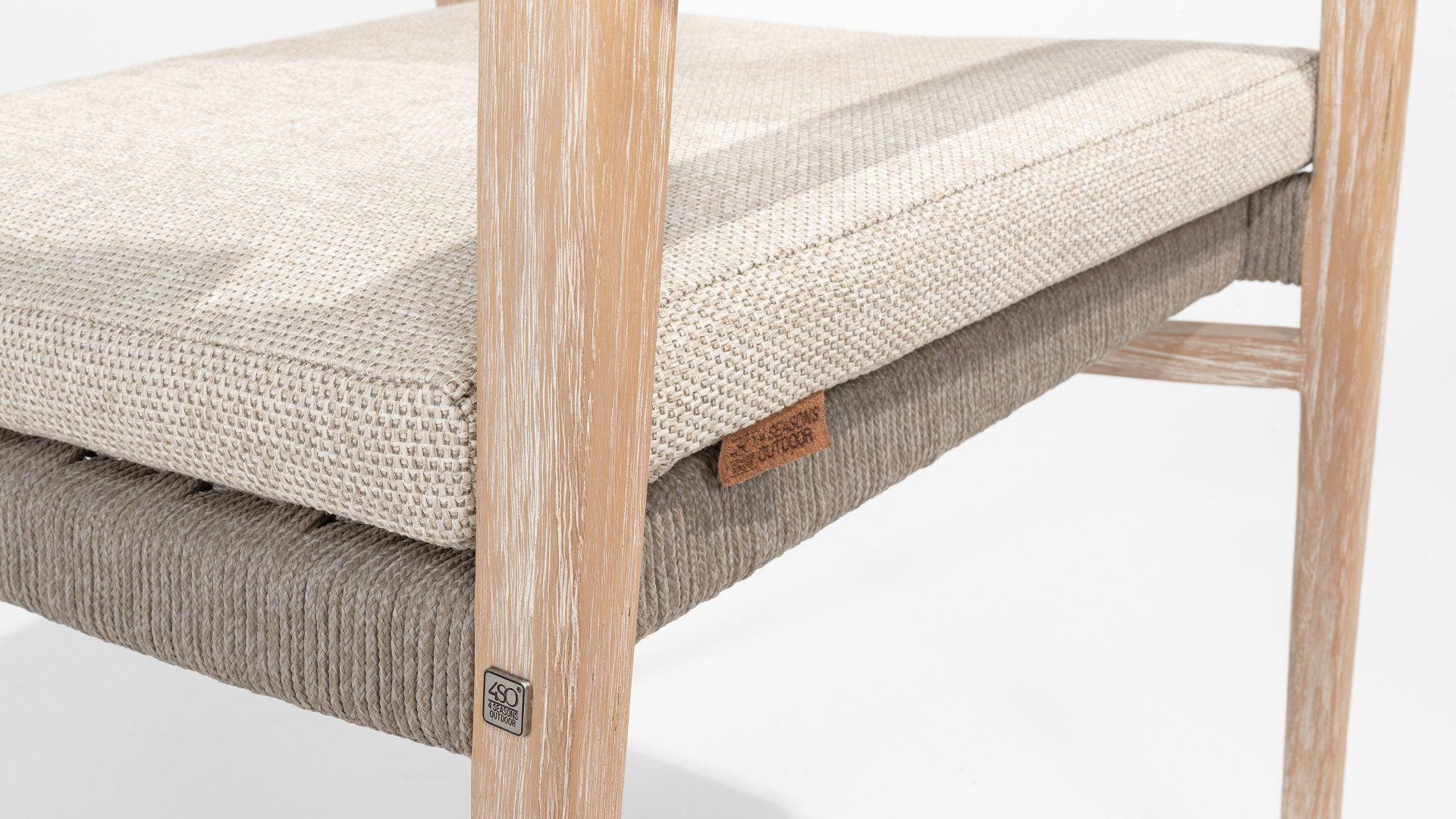 Een verbluffende verschijning Een frame van geborsteld teakhout is ombonden met taupe touw en afgewerkt met beige kussens, voor een eigentijds design dat naadloos opgaat in uw tuin. Julia is een uitzonderlijke serie, een 'natuurlijke schoonheid' met klasse. Geniet van tijdloze elegantie en duurzaamheid met de 4 Seasons Outdoor Julia stapelbare dining stoel van brushed teak. Het teak is geborsteld, wat wil zeggen dat het een ruwe, natuurlijke afwerking heeft met lichte highlights in de groeven. Deze afwerking is uniek en geeft dit buitenmeubel een unieke look. Deze stoel wordt geleverd inclusief kussens en heeft een prachtig, hoogwaardig teakhouten frame. Het rope in een taupe kleur maakt het geheel af. Het rugkussen is makkelijk afneembaar door een subtiel touwsysteem. Tevens is van deze serie ook een lounge en low dining verkrijgbaar: 4SO Julia Loungeset & 4SO Julia Low Dining Set.