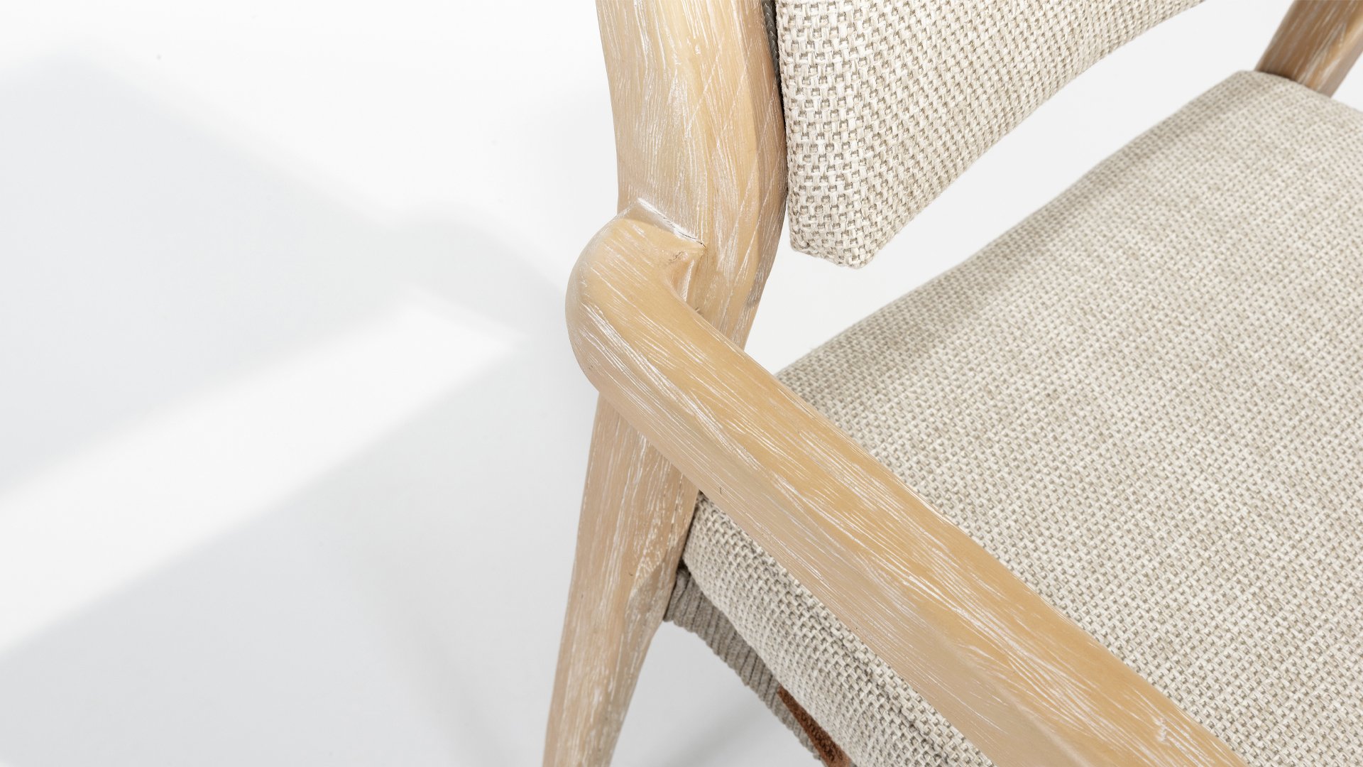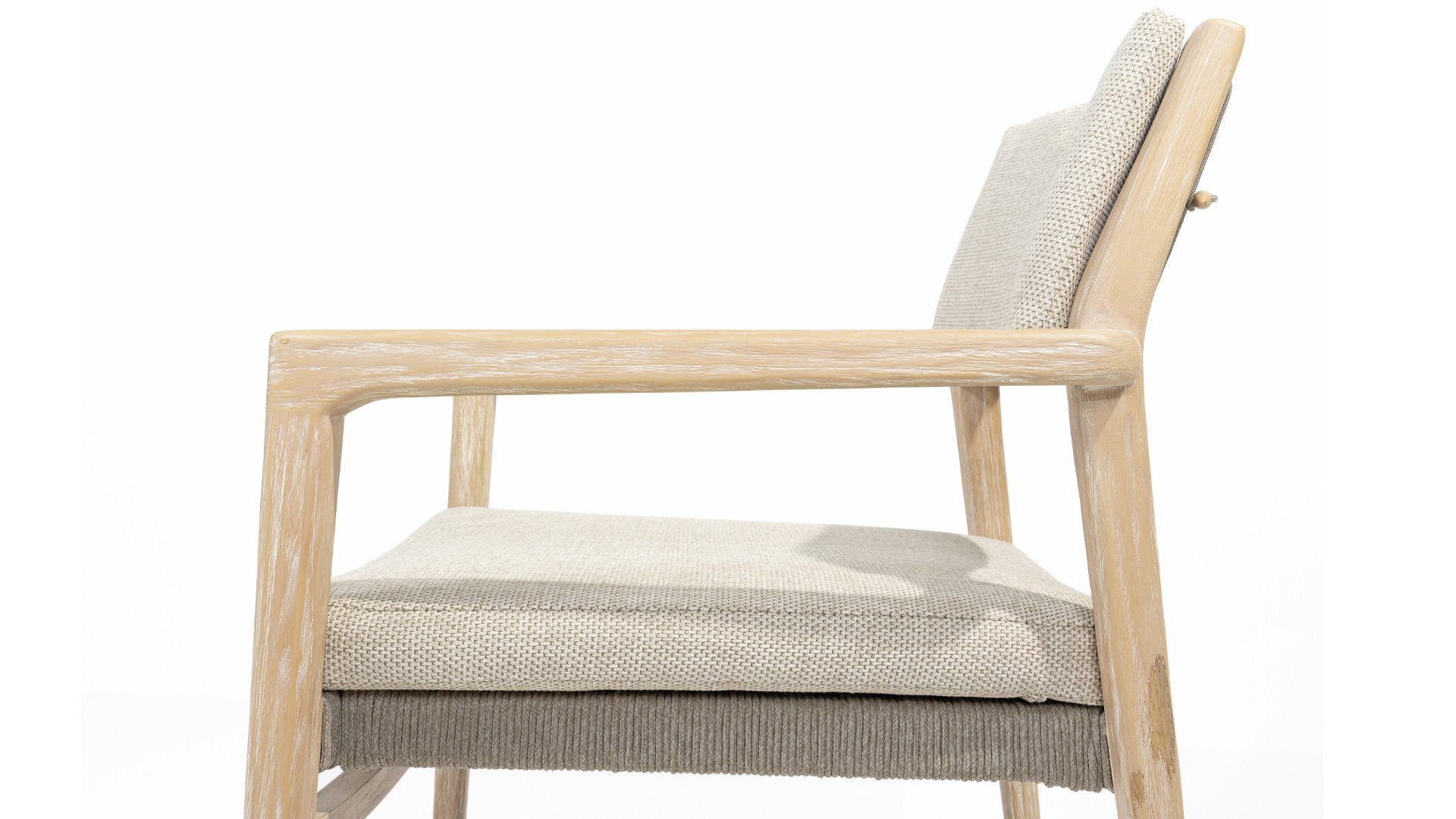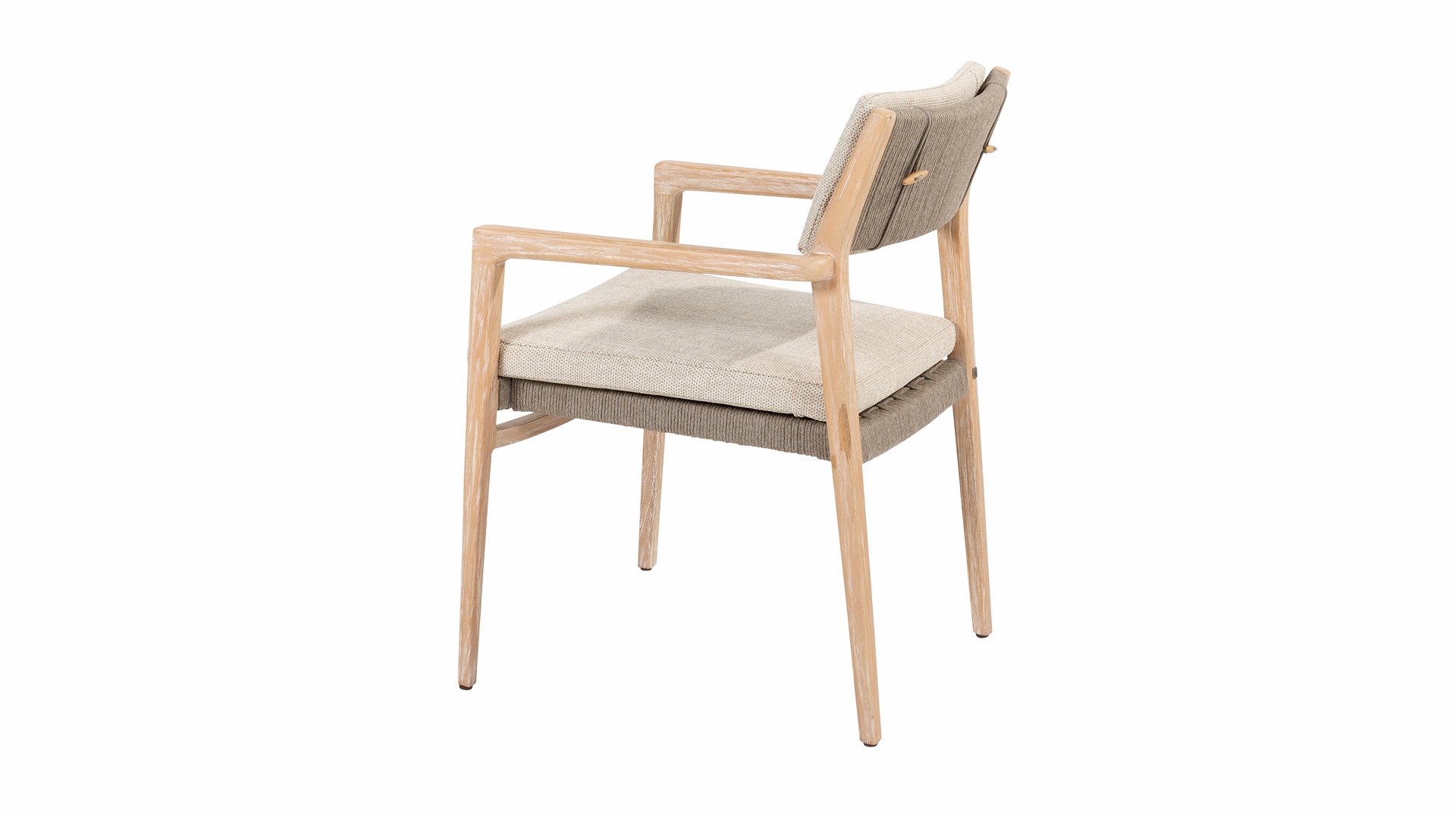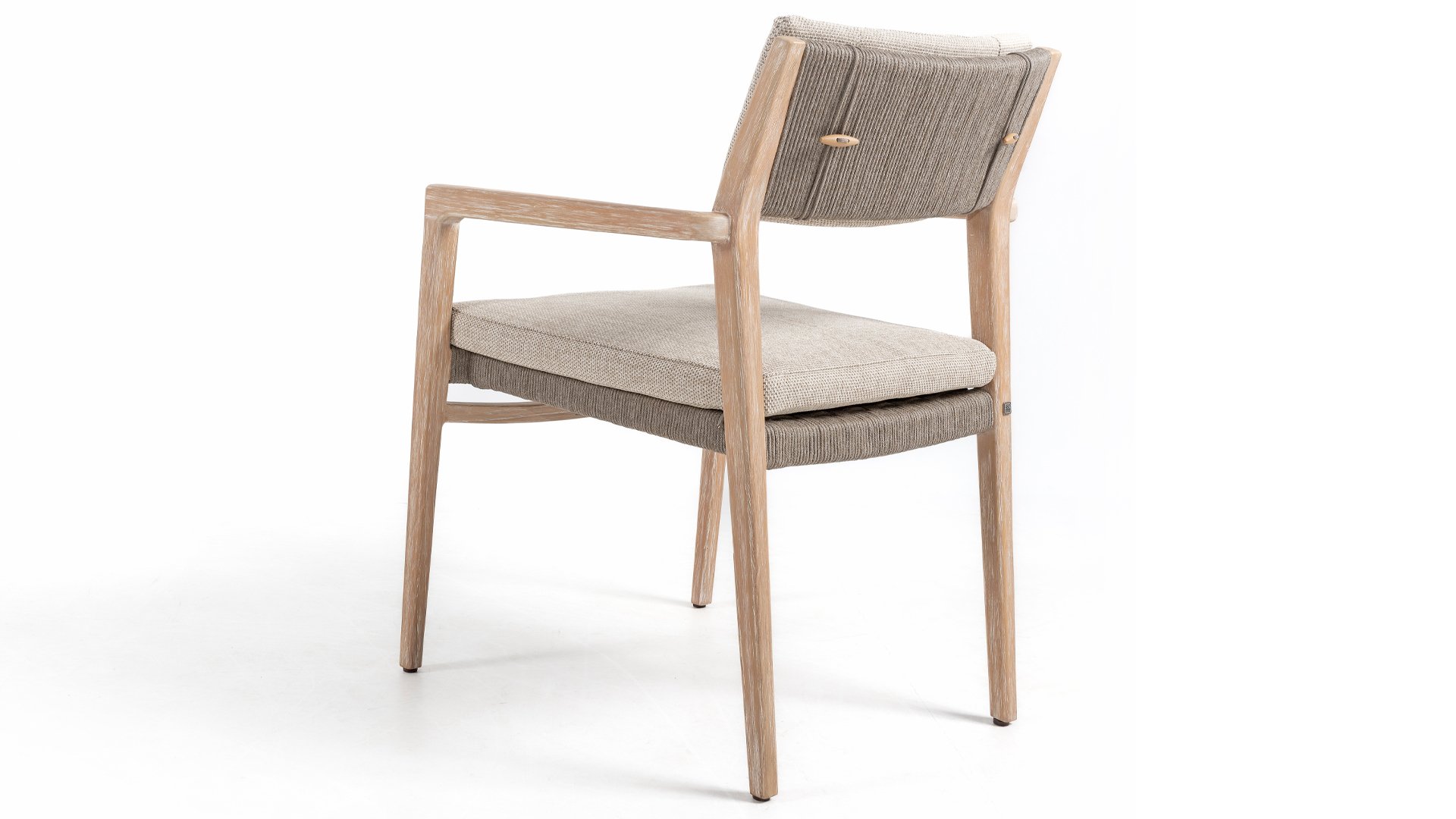 Een verbluffende verschijning Een frame van geborsteld teakhout is ombonden met taupe touw en afgewerkt met beige kussens, voor een eigentijds design dat naadloos opgaat in uw tuin. Julia is een uitzonderlijke serie, een 'natuurlijke schoonheid' met klasse. Geniet van tijdloze elegantie en duurzaamheid met de 4 Seasons Outdoor Julia stapelbare dining stoel van brushed teak. Het teak is geborsteld, wat wil zeggen dat het een ruwe, natuurlijke afwerking heeft met lichte highlights in de groeven. Deze afwerking is uniek en geeft dit buitenmeubel een unieke look. Deze stoel wordt geleverd inclusief kussens en heeft een prachtig, hoogwaardig teakhouten frame. Het rope in een taupe kleur maakt het geheel af. Het rugkussen is makkelijk afneembaar door een subtiel touwsysteem. Tevens is van deze serie ook een lounge en low dining verkrijgbaar: 4SO Julia Loungeset & 4SO Julia Low Dining Set.