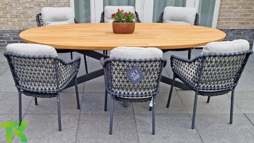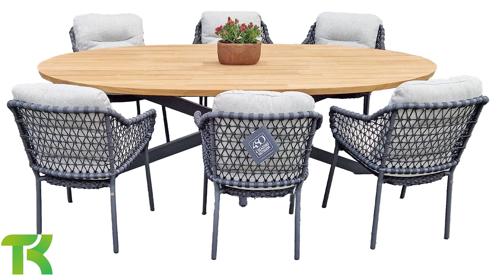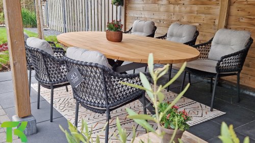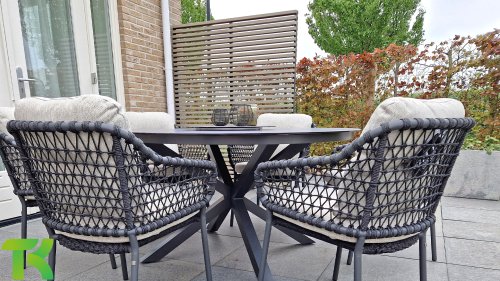 Juras natürliche Schönheit Das 4 Seasons Outdoor Jura Anthrazit kombiniert Anthrazittöne mit der gedämpften Farbe des geknoteten Seils. Schön auf einem Teakholztisch und man kann ihn auch stapeln. Nehmen Sie Platz und genießen Sie. Erleben Sie die perfekte Kombination aus Komfort, natürlicher Optik und modernem Design mit dem 4SO Jura stapelbaren Esszimmerstuhl Olive. Dieser Stuhl wird mit Kissen geliefert. Der Jura verfügt über ein attraktives olivgrünes Seilgeflecht und einen eleganten olivfarbenen Edelstahlrahmen. Der Jura ist bei uns auch in Olive erhältlich: 4 Seasons Outdoor Jura Olive Green.