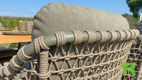 - Natürlicher Look: Das olivfarbene Seilgeflecht verleiht dem Jura-Stuhl ein natürliches Aussehen, sodass er sich mühelos in jede Outdoor-Umgebung einfügt.