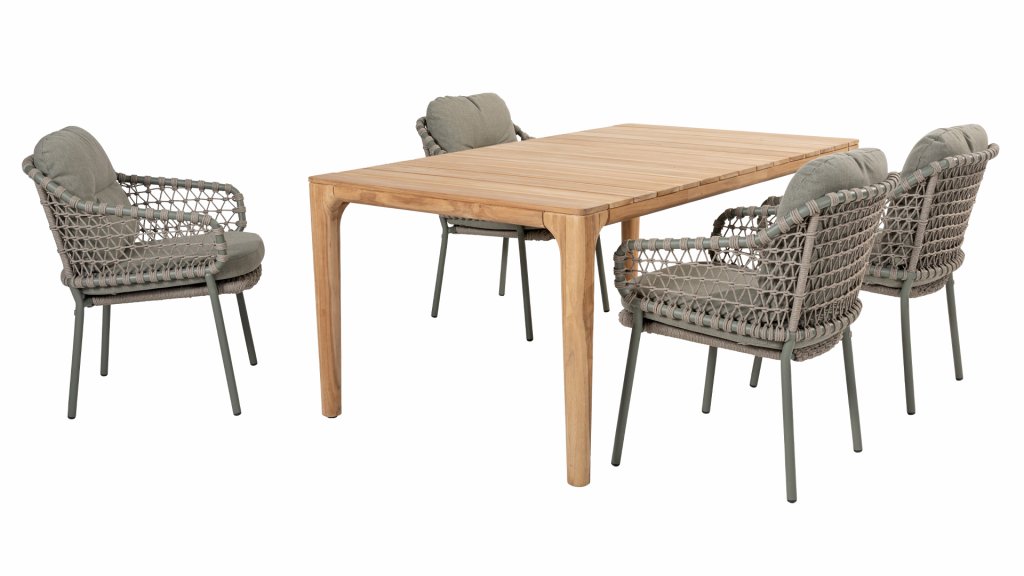 Juras natürliche Schönheit Die 4 Seasons Outdoor Jura Olive kombiniert olivfarbene Töne mit einer zurückhaltenden Taupe-Farbe des geflochtenen Seils. Wunderschön an einem Teaktisch und dazu stapelbar. Nehmen Sie Platz und genießen Sie. Erleben Sie die perfekte Kombination aus Komfort, natürlicher Ausstrahlung und modernem Design mit dem stapelbaren 4SO Jura Dining Chair Olive. Dieser Stuhl wird inklusive Kissen geliefert. Die Jura hat ein attraktives olives Rope-Geflecht und ein elegantes olives Edelstahlgestell. Bei uns ist der Jura auch in Anthrazit erhältlich: 4 Seasons Outdoor Jura Anthrazit, exklusiv bei Gartenmoebelrabatt.ch.ch!