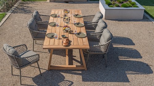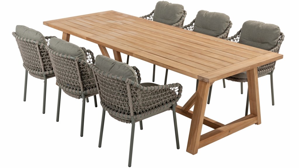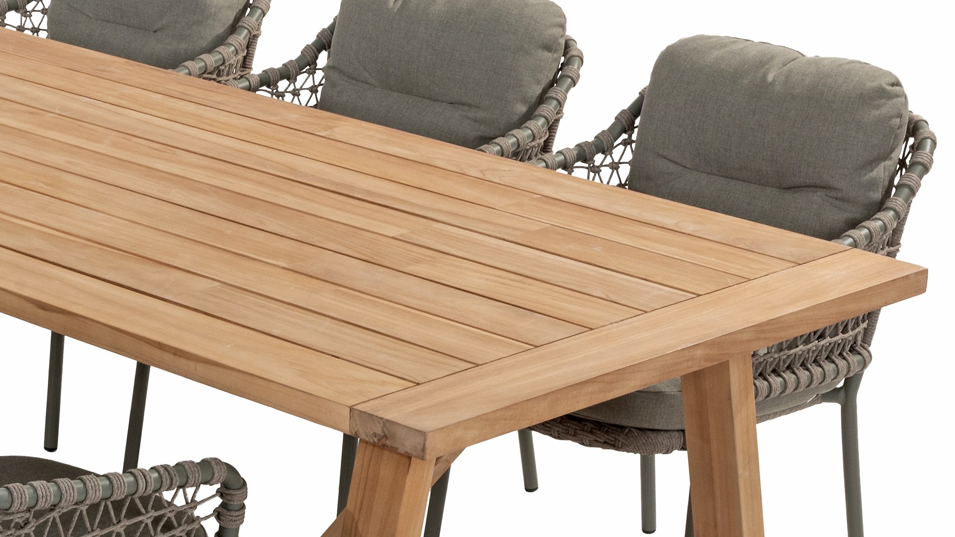Gartenmöbel aus Teakholz bieten einen atemberaubenden Blick.Teakholz eignet sich besonders gut für den Einsatz im Außenbereich. Es ist resistent gegen Schädlinge und Pilze und widerstandsfähig gegen Sonne, Regen und Schnee. Mit der Zeit entwickelt das Teakholz eine silbergraue Patina. Gartenmöbel aus Teakholz bieten einen atemberaubenden Blick. Darüber hinaus ist es starkes Material und erfordert nur wenig Wartung. Wer die ursprüngliche Farbe des Teakholzes bevorzugt, kann durch regelmäßiges benutzen unser Pflegemittel ganz einfach das Vergrauen des Holzes verhindern.Darüber hinaus können Sie Teak mit grüner Seife reinigen. Durch Temperaturunterschiede und durch den Wechsel von Feuchtigkeit und Trockenheit können kleine Haarrisse entstehen. Es ist üblich, dass Man in dies Unvollkommenheiten findet, diese Unregelmäßigkeiten sind kennzeichnend für dieses Produkt. Diese Unregelmäßigkeiten können nie einen Anlass zu Reklamation, Garantie oder Claim formen. Es betrifft eine Unterschrift von Originalität! Wir gewähren Garantie auf alle Produktions- und Konstruktionsfehler. Die Wirkung von Teakholz ist nicht enthalten. Wenn Sie sich für Teakholz entscheiden, erwarten wir, dass Sie diese Eigenschaften zu schätzen wissen. Eventuell auftretende Haarrisse, Äste im Teakholz und raue Oberflächen im Laufe der Zeit fallen nicht unter unsere Garantie. Diese Eigenschaften verleihen dem Teakholz seinen eigenen Charakter und sind Teil der Optik. Seien Sie vorsichtig mit einem Blumentopf oder einer Vase auf Ihrem Gartentisch aus Teakholz, da dies zu hartnäckigen Kreisen oder Farbunterschieden führen kann.